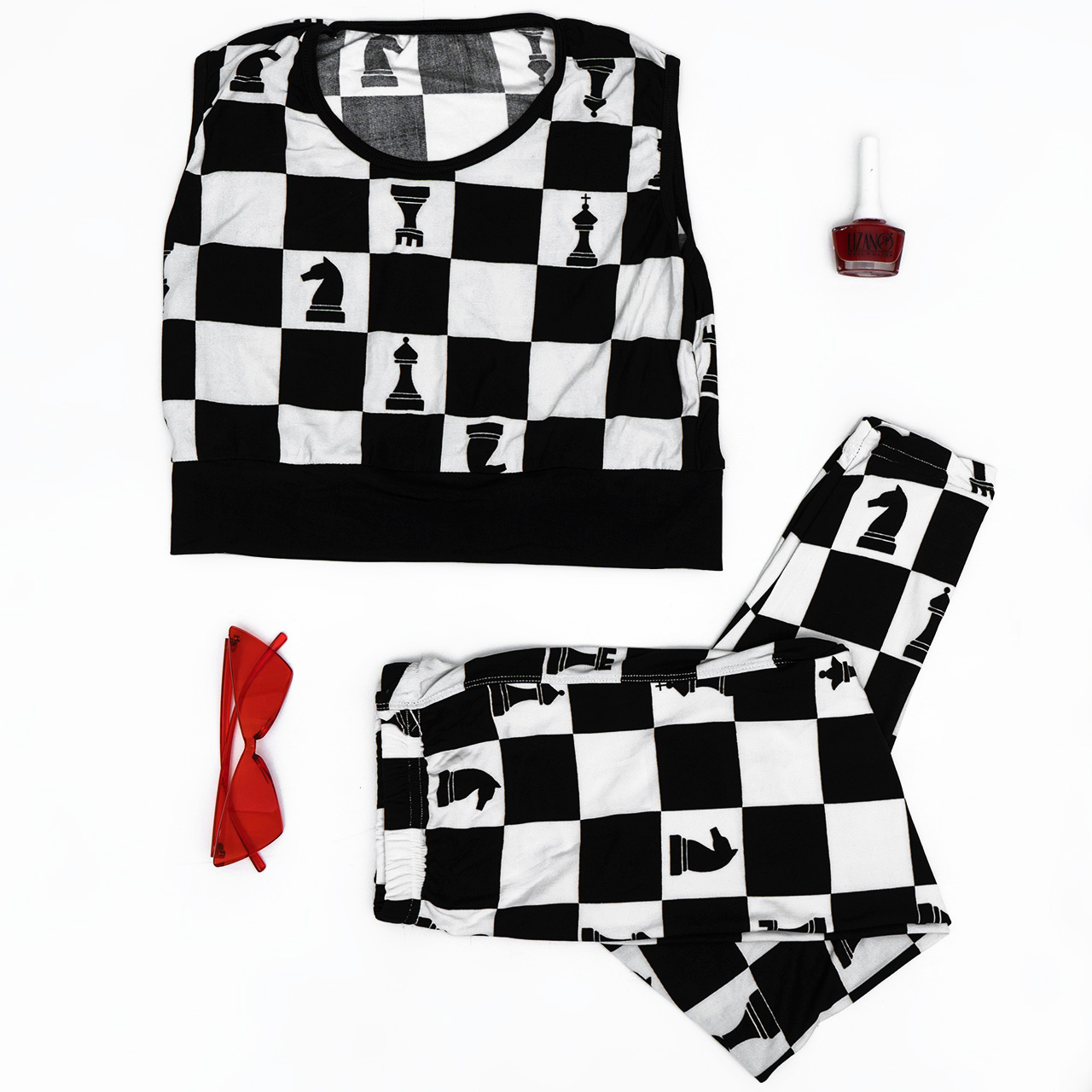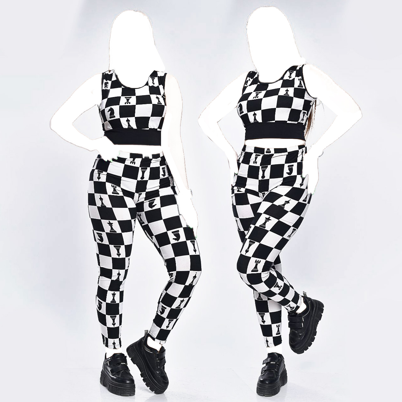 ست نیم تنه و ساپورت شطرنجی دخترانه مدل ۳۴۸