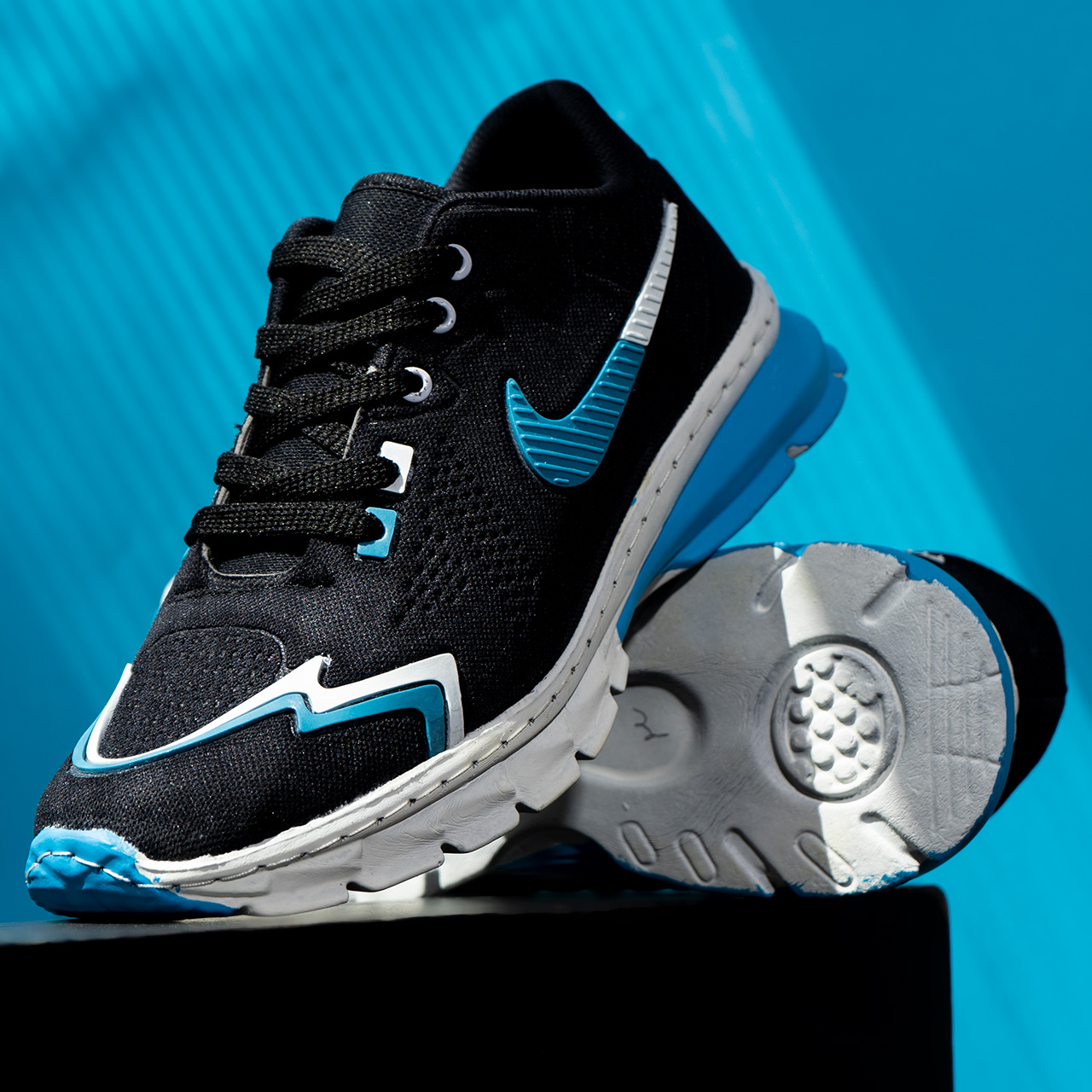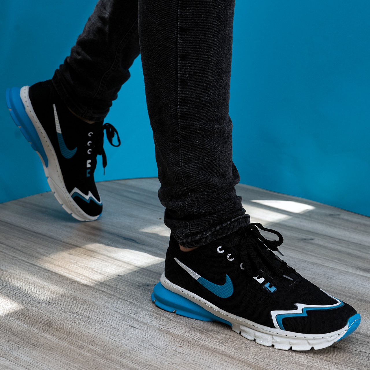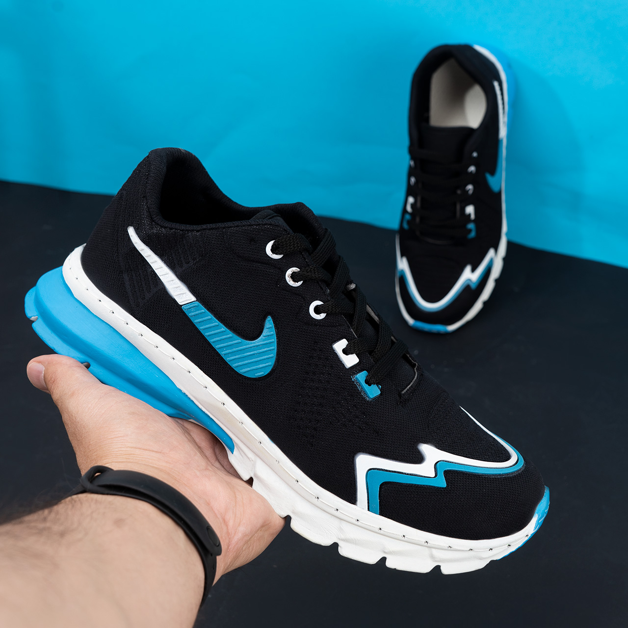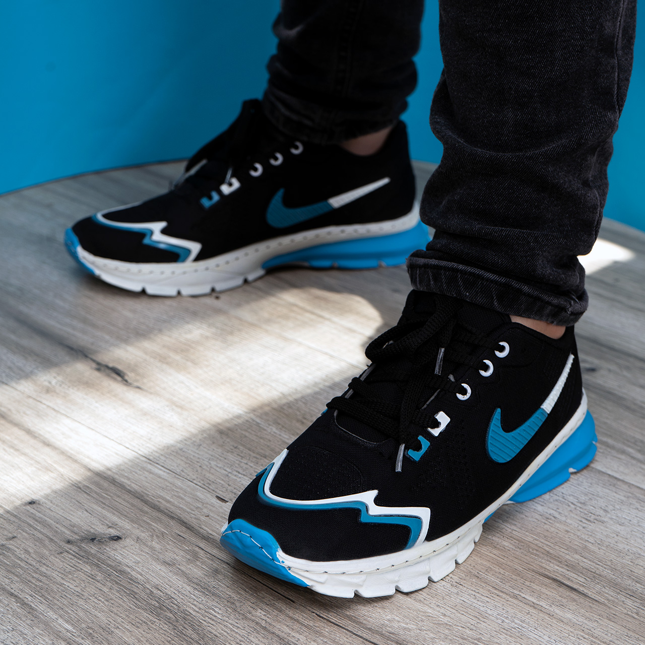 کفش نایک مشکی آبی خط دار مردانه مدل Sibon