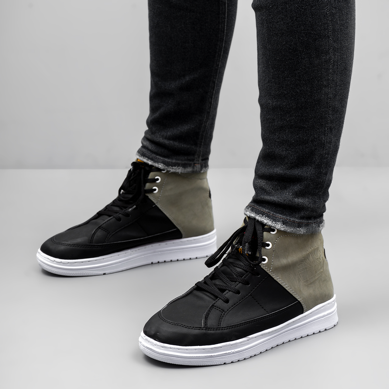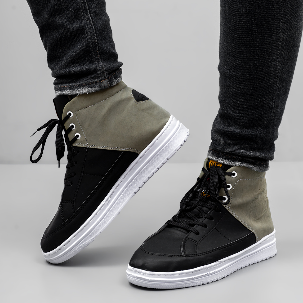 کفش ساقدار مردانه مشکی طوسی مدل R88