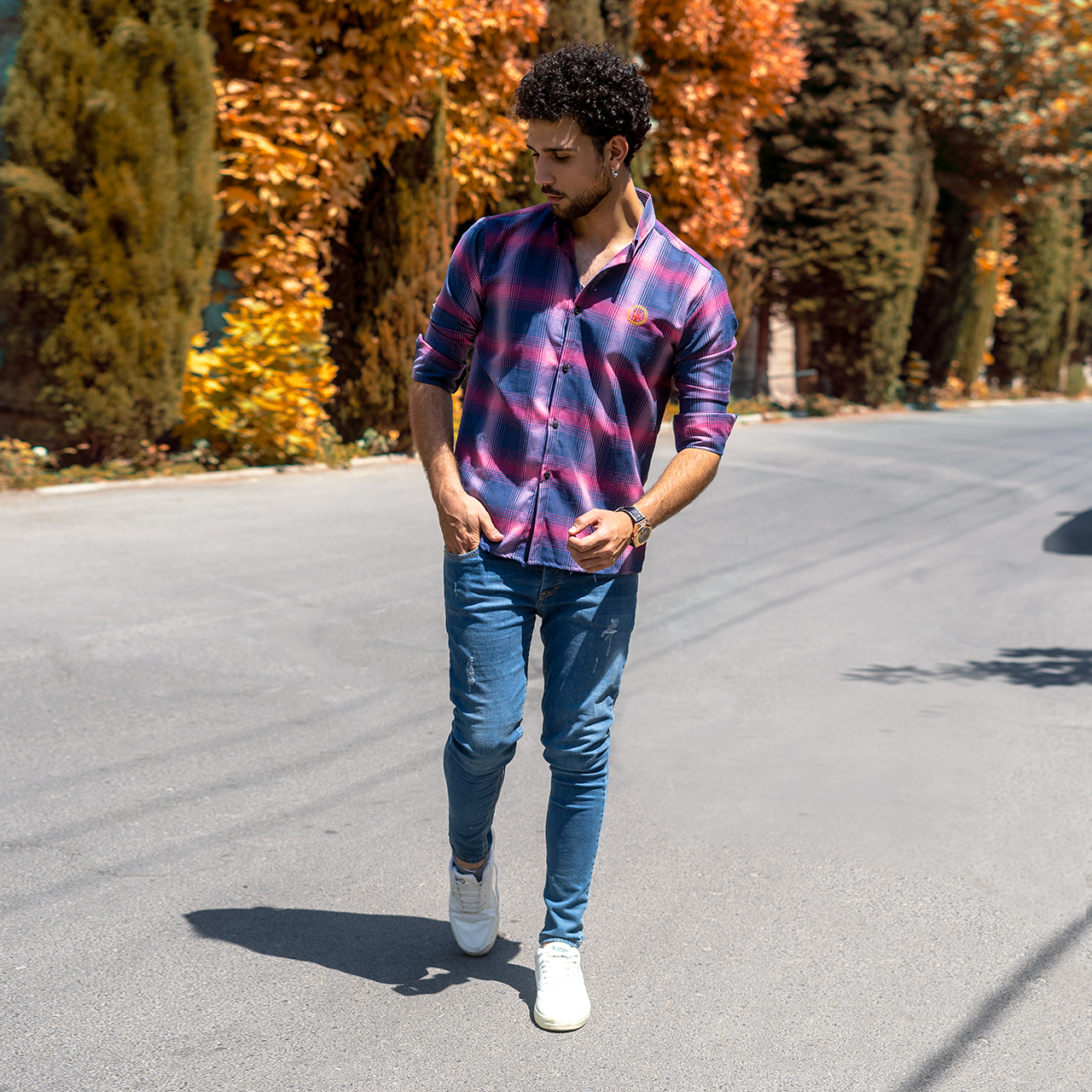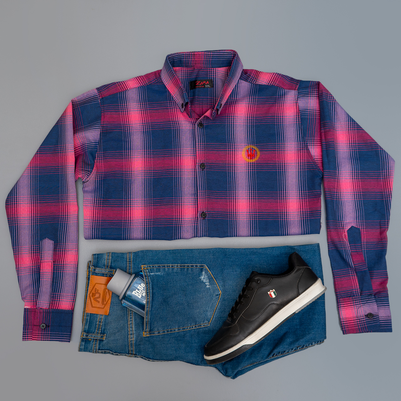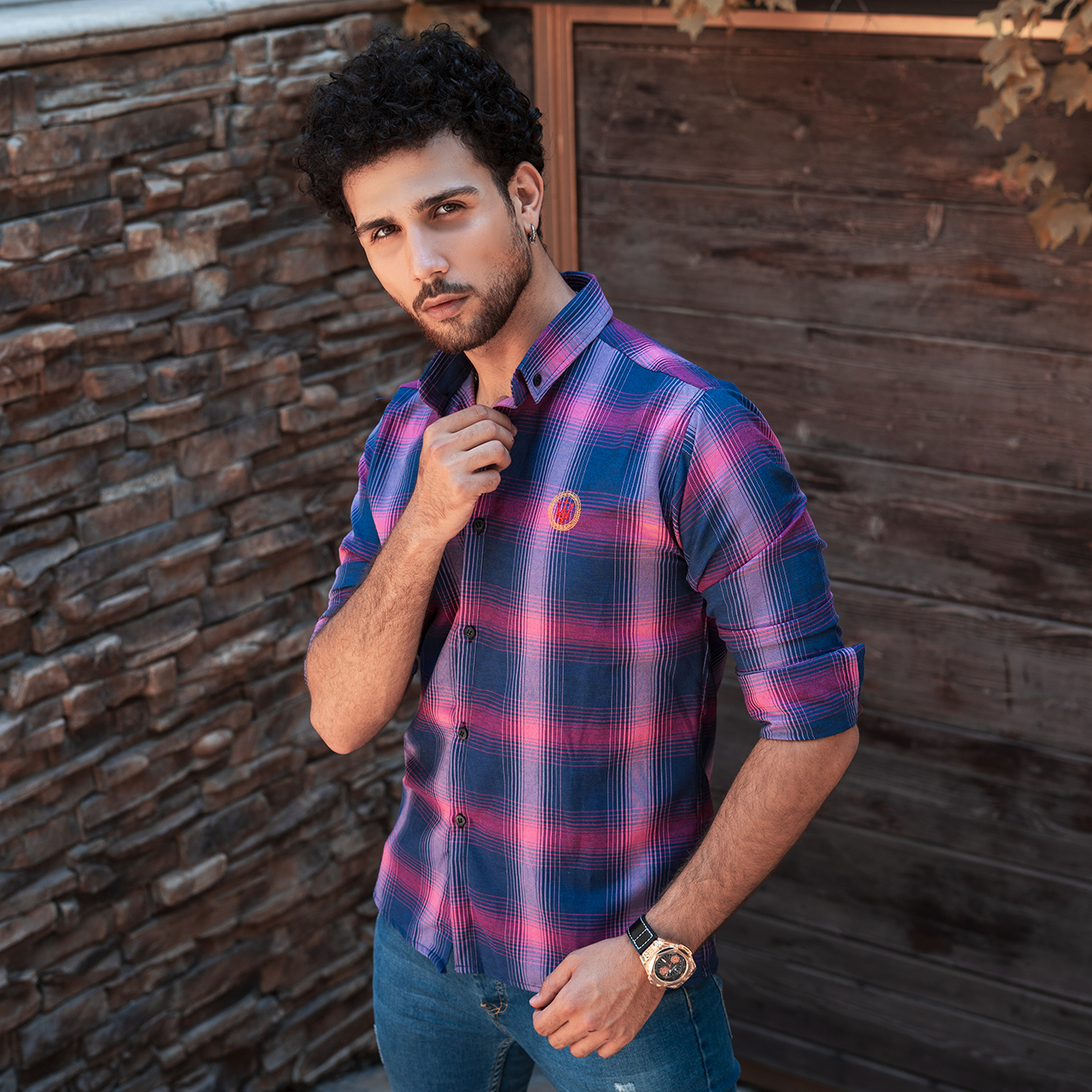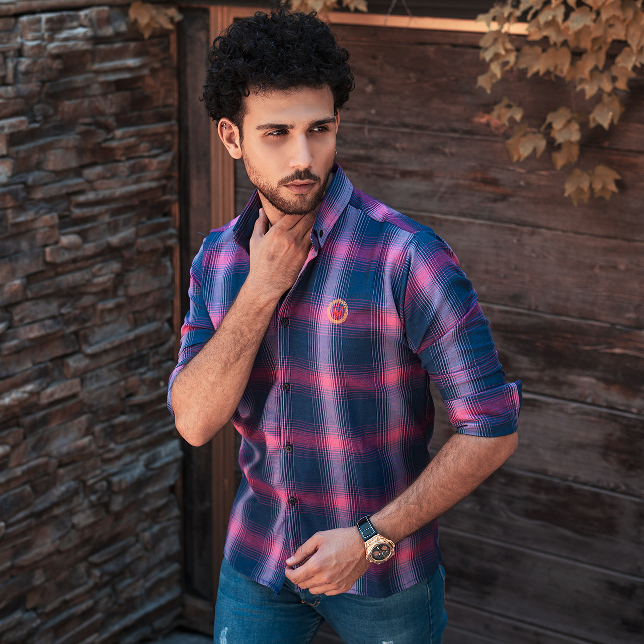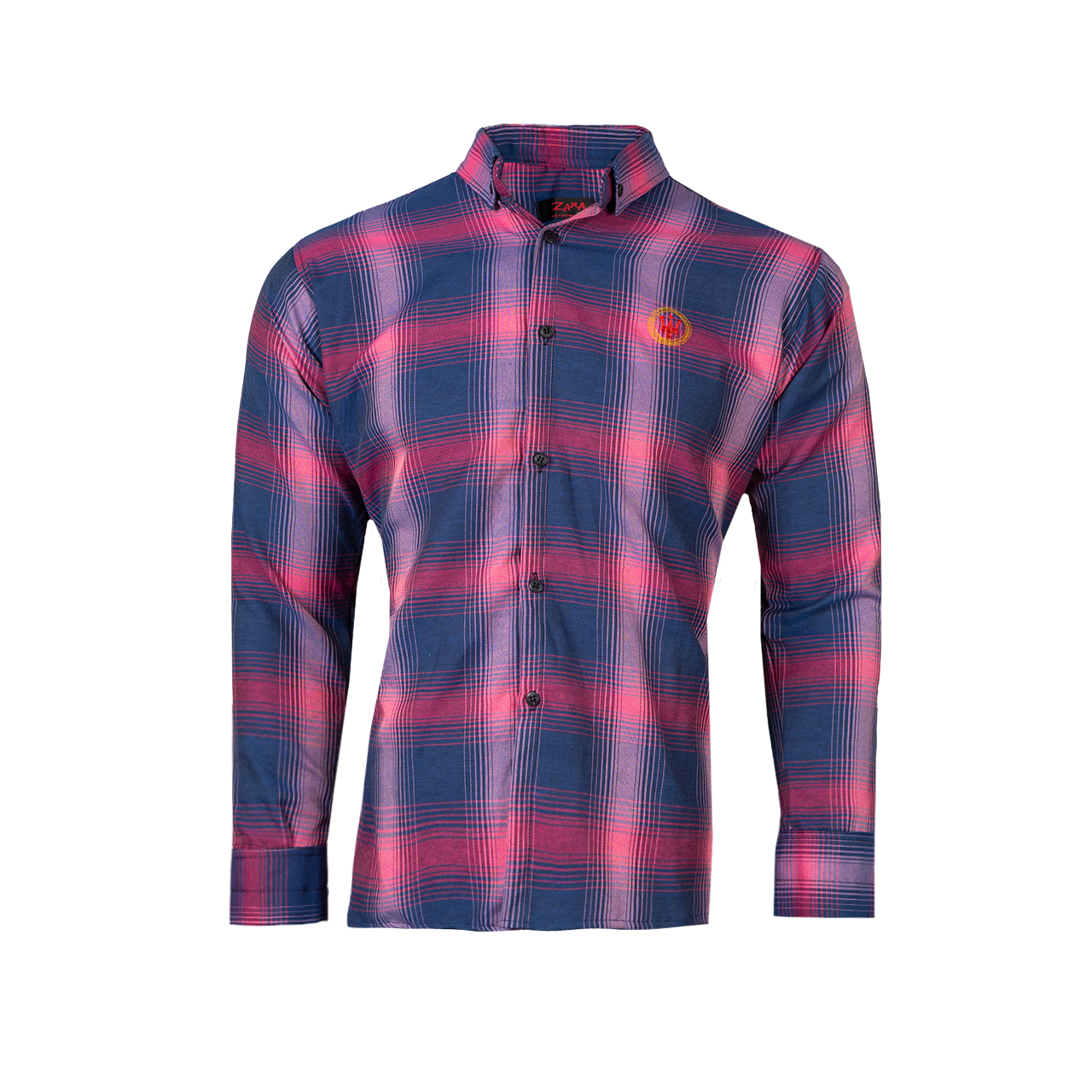 پیراهن چهارخونه مردانه سرمه ای صورتی مدل B16