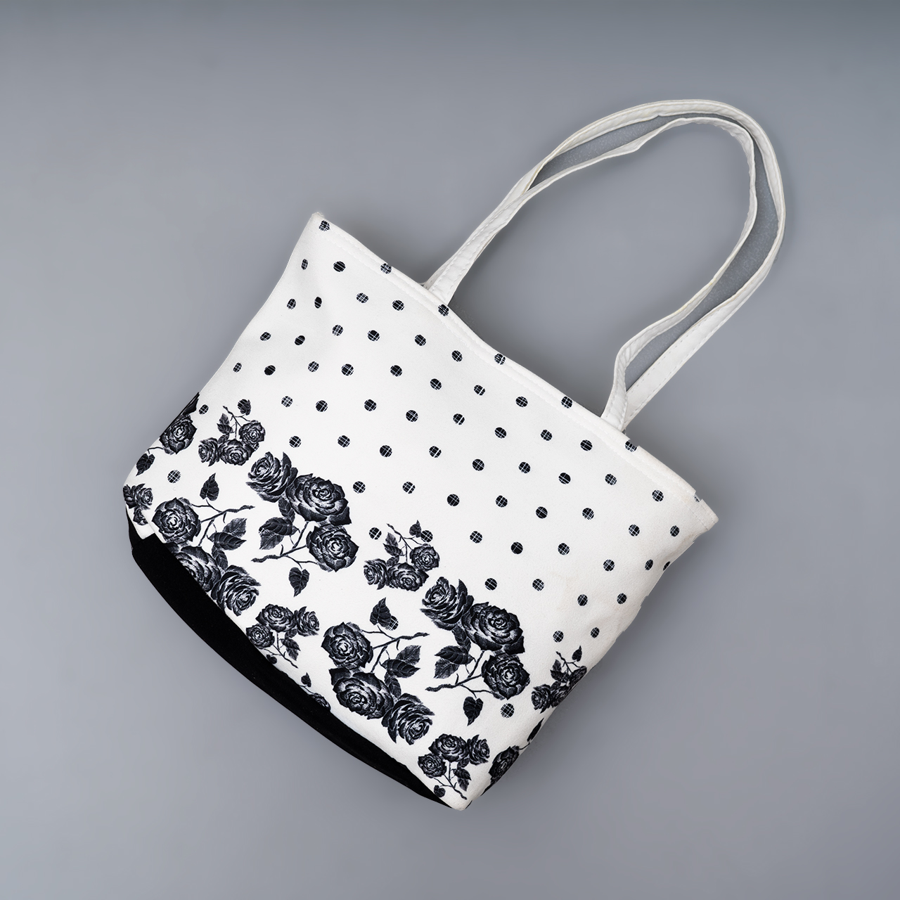 کیف دوشی سیاه سفید طرح گل زنانه مدلX64