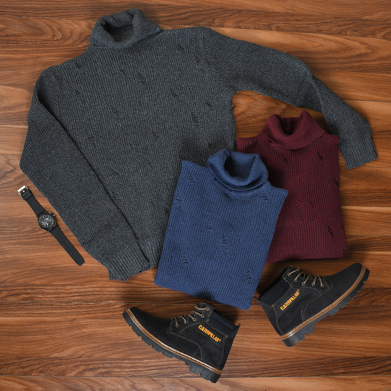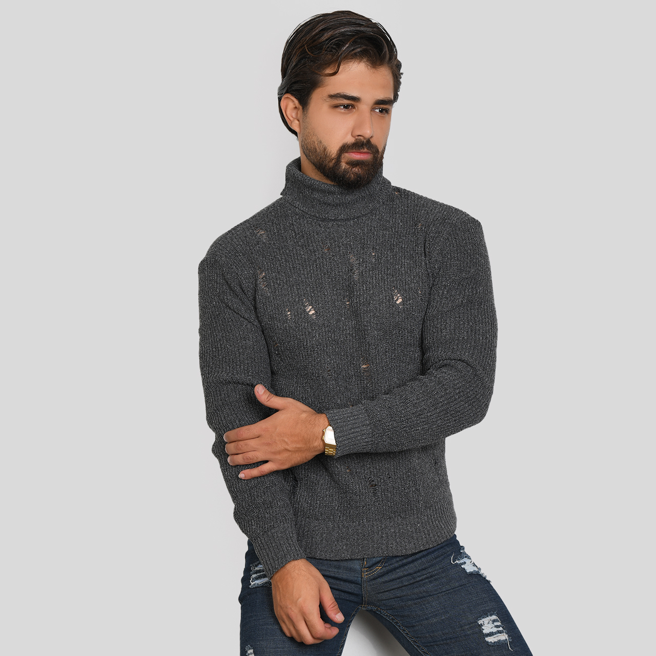 پلیور یقه اسکی ذغالی زاپ دار مردانه مدل U10