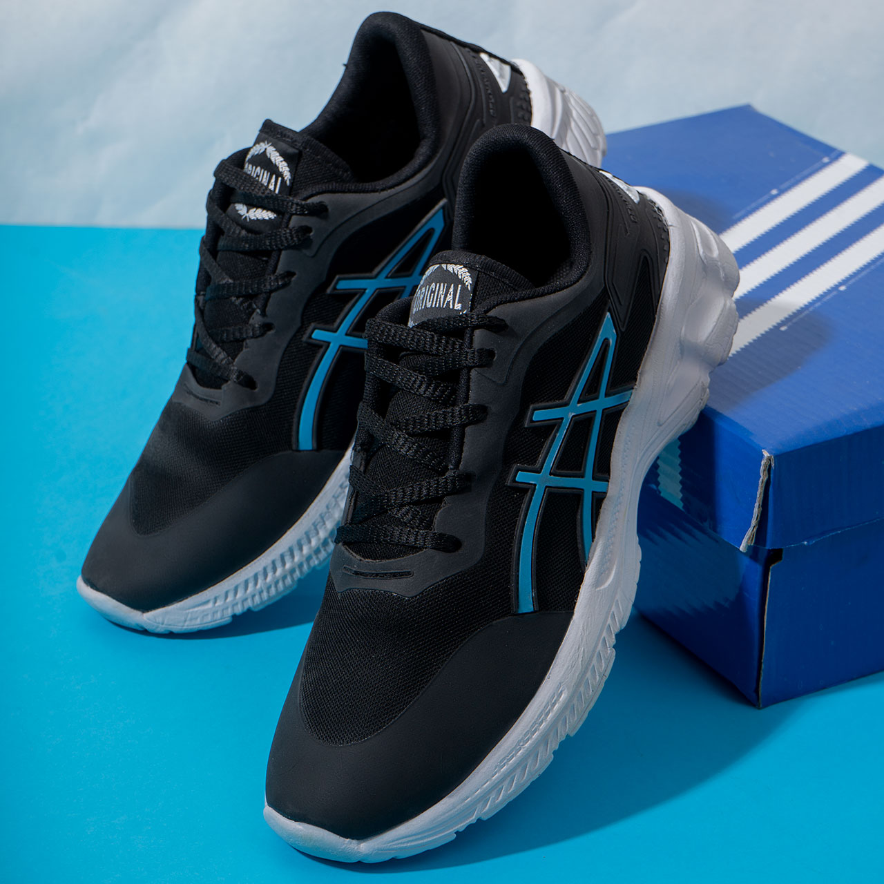 کفش ورزشی مشکی آبی زیره سفید مردانه مدل Rail