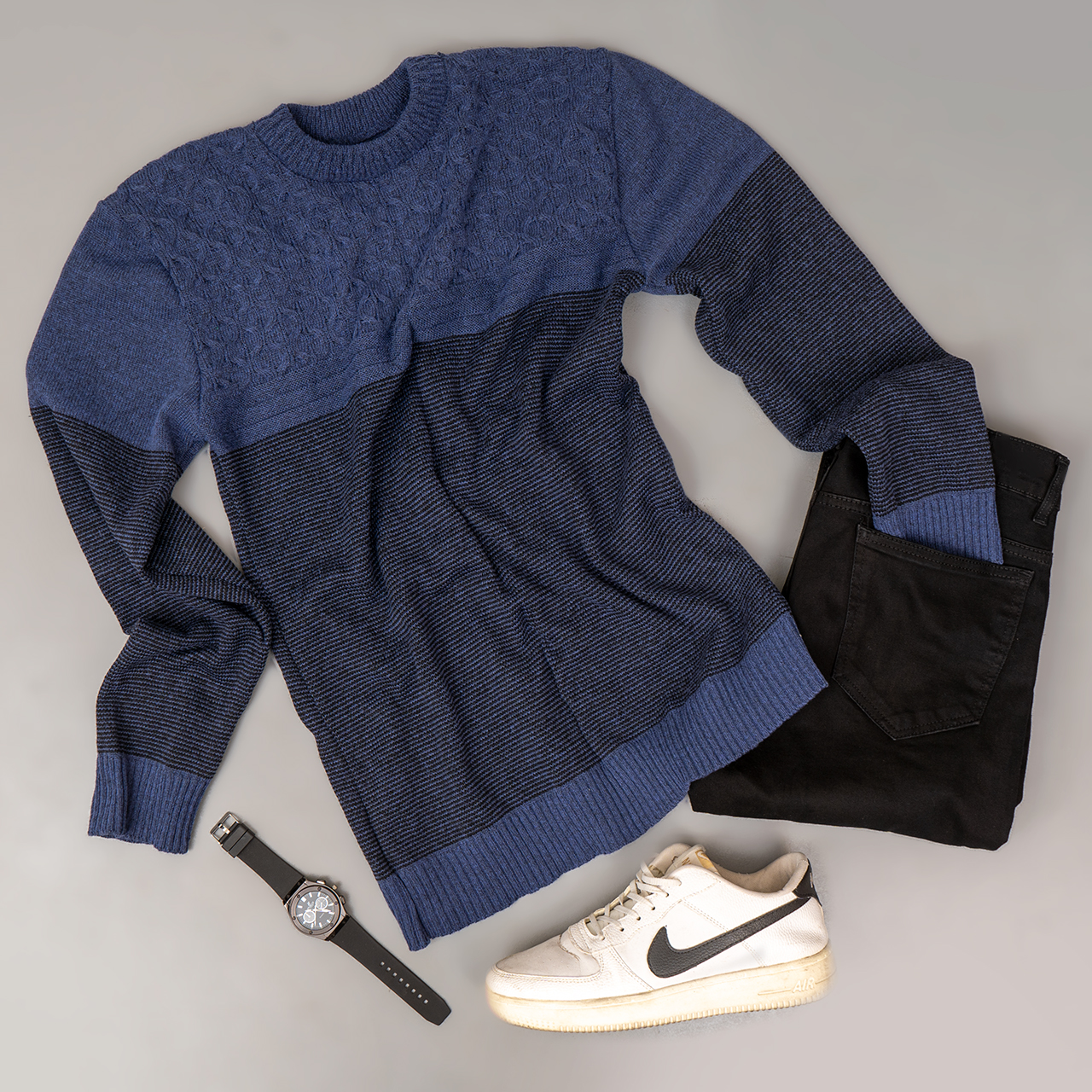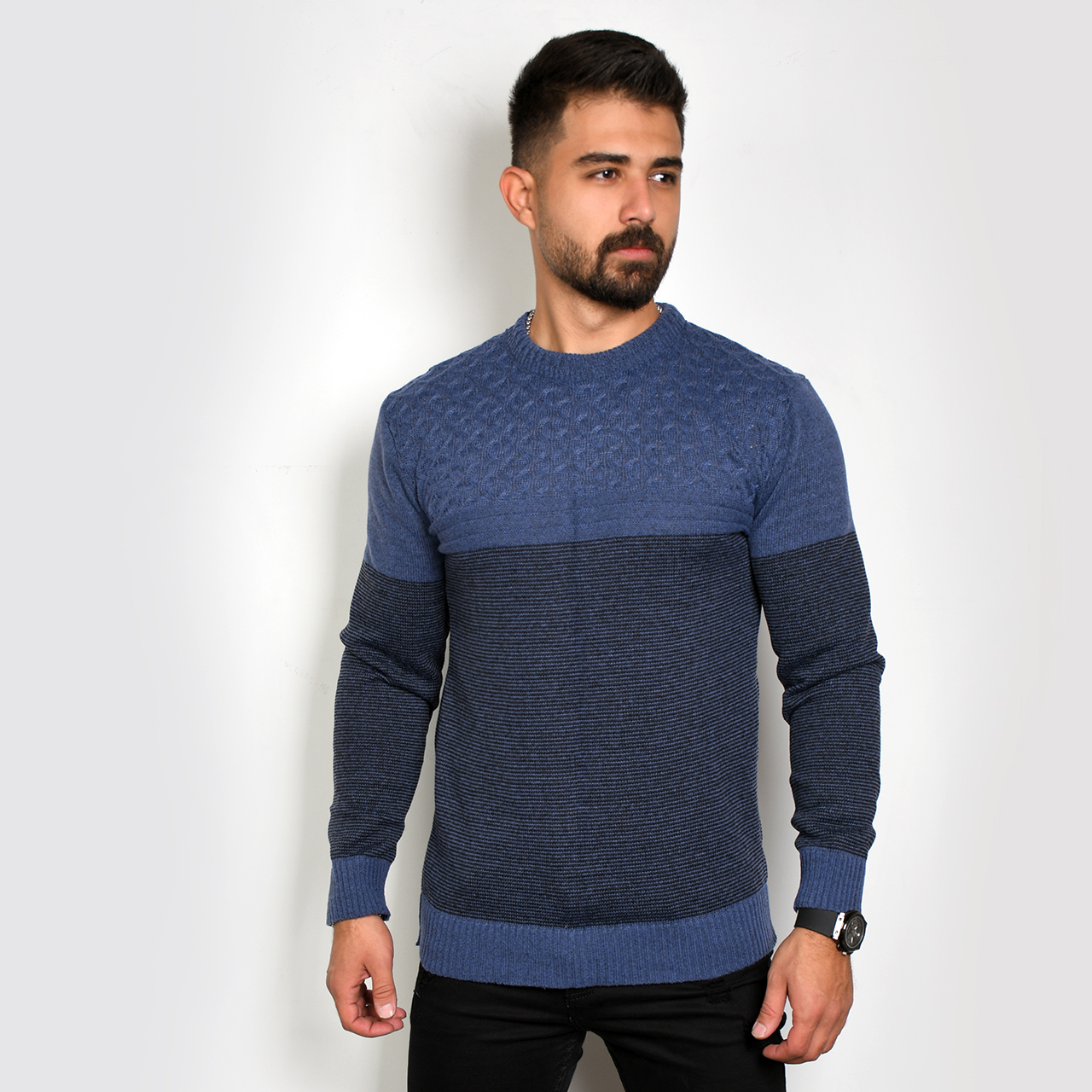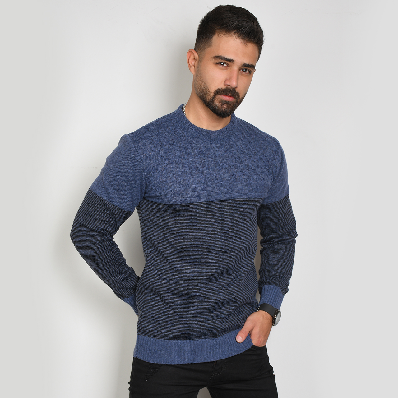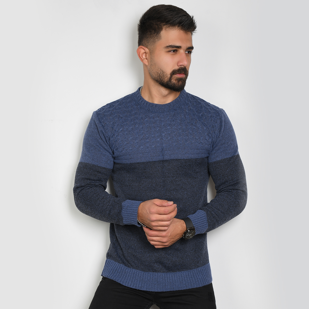 پلیور مردانه راه راه سرمه ای مدل navid