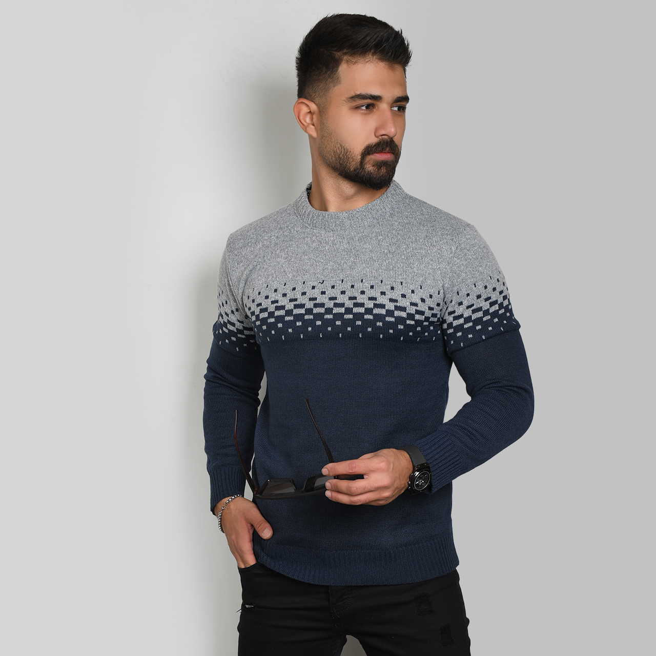 پلیور مردانه دو رنگ سرمه ای طوسی مدلShatel