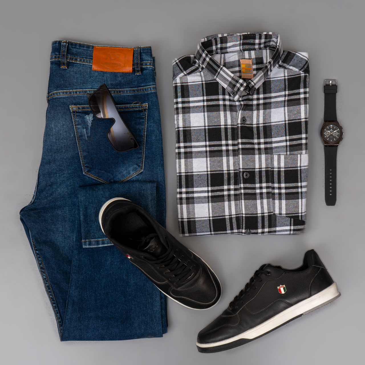 پیراهن مردانه چهارخونه مشکی سفید مدل Siamak