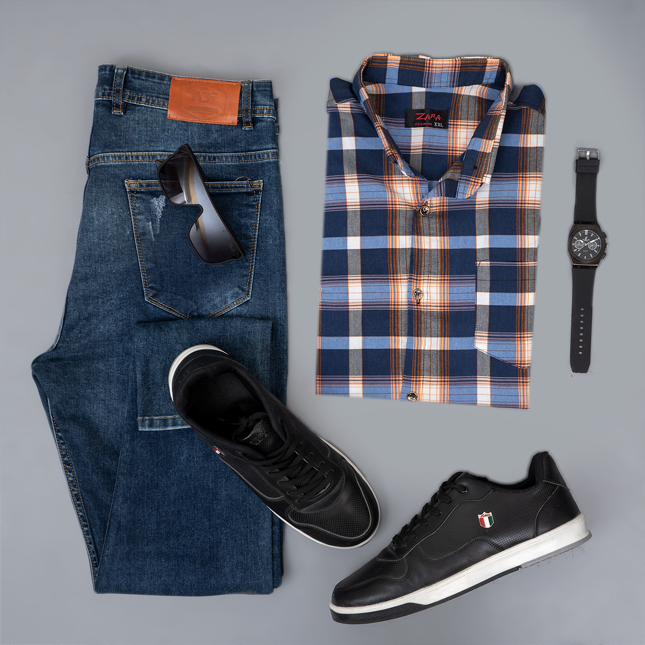 پیراهن مردانه سرمه ای نارنجی مدل Redi