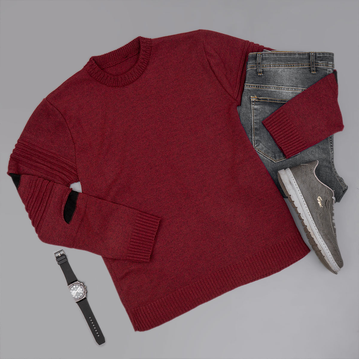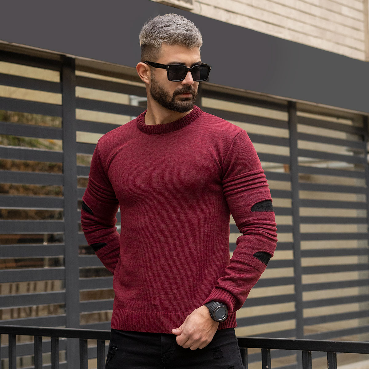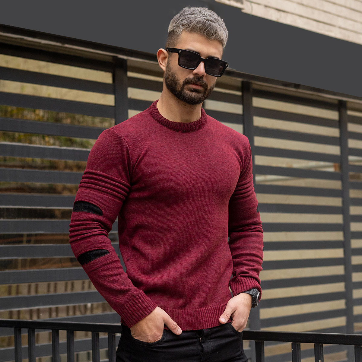 پلیور زاپ دار مردانه زرشکی مشکی مدل solan