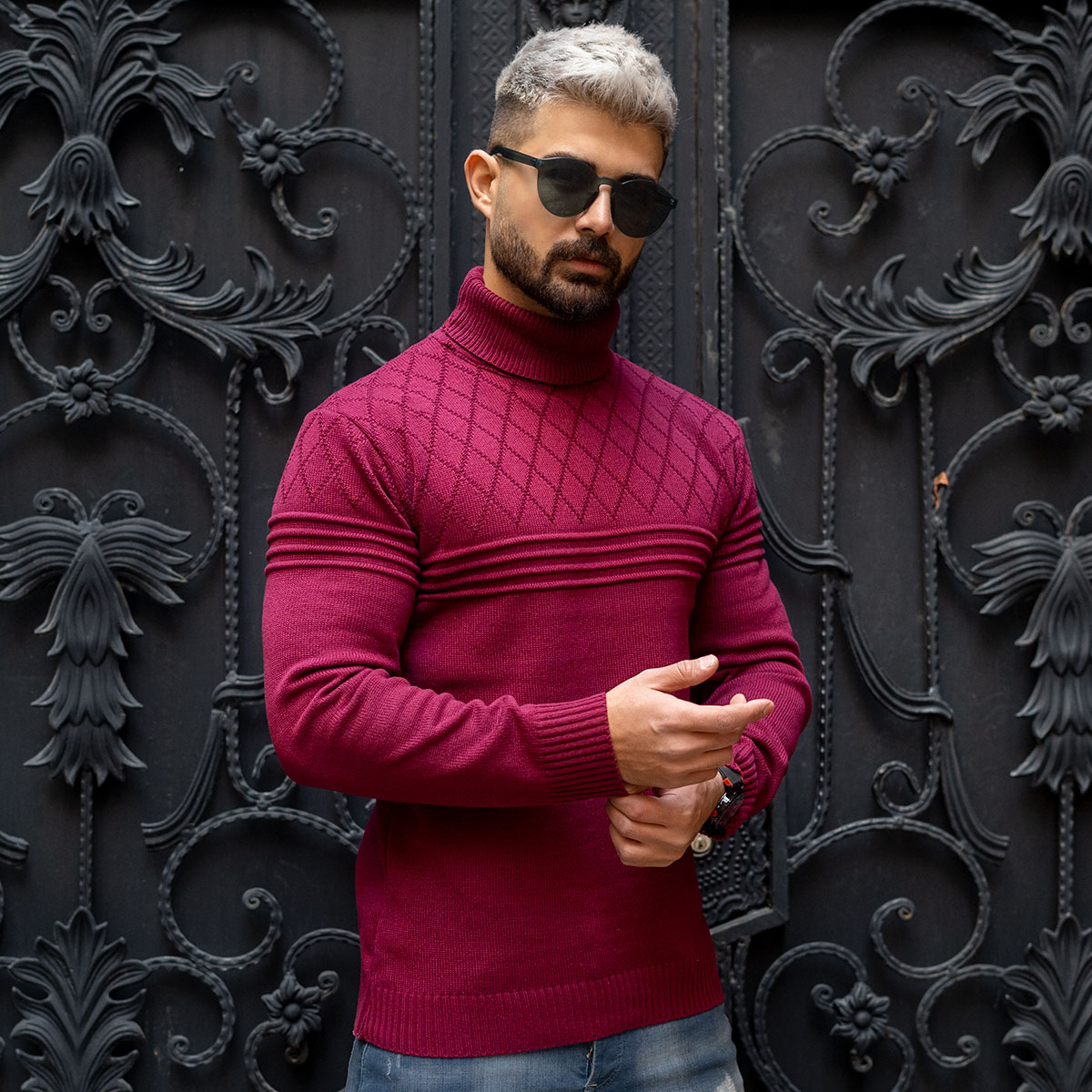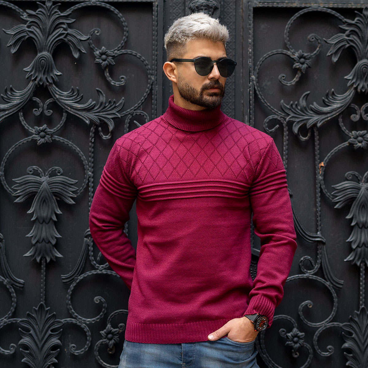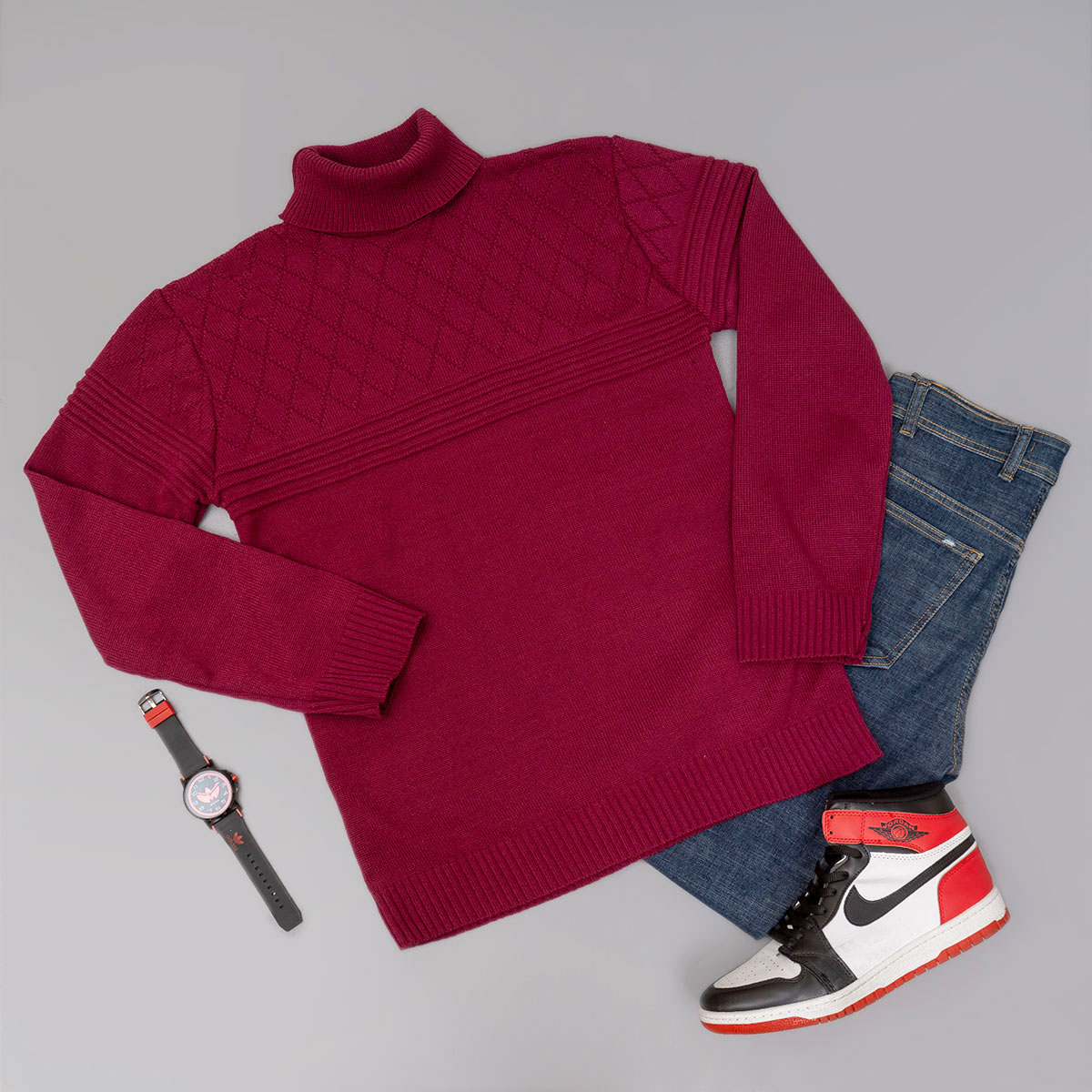 پلیور مردانه زرشکی طرح لوزی مدل Havash