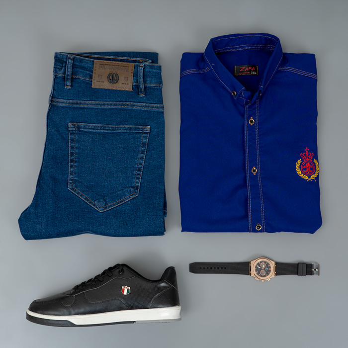 پیراهن مردانه آبی کاربنی مدل Gabi