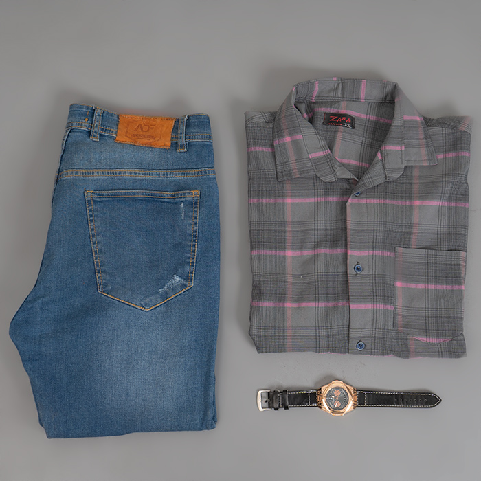 پیراهن مردانه طوسی تیره صورتی مدل ahora