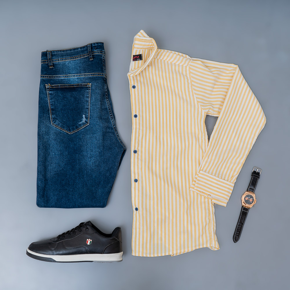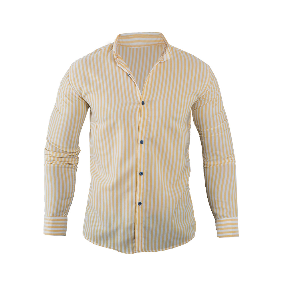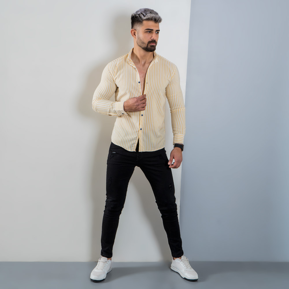پیراهن راه راه سفید زرد مردانه مدل HAMED