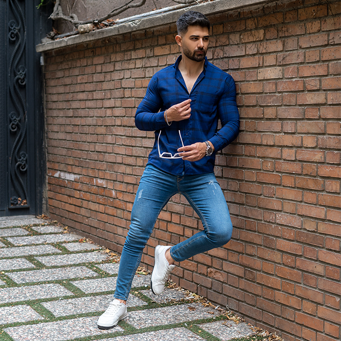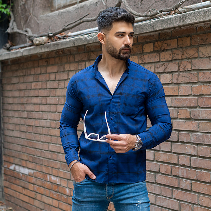 پیراهن مردانه سرمه ای مدل Tanpoosh