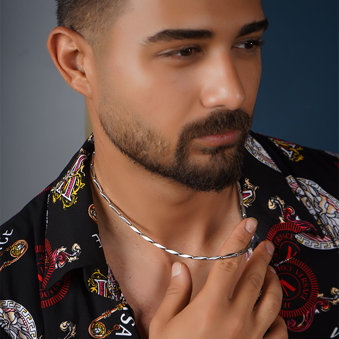 گردنبند مردانه نقره ای مدل C90 جنس : استیل ضد زنگ طول زنجیر گردنبند : 50cm رنگ : نقره ای