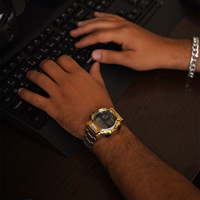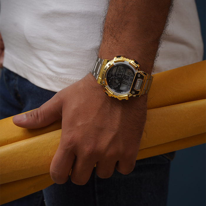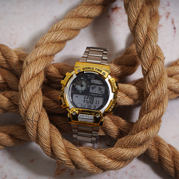ساعت مچی کامپیوتری طلایی مدل Worldtime
