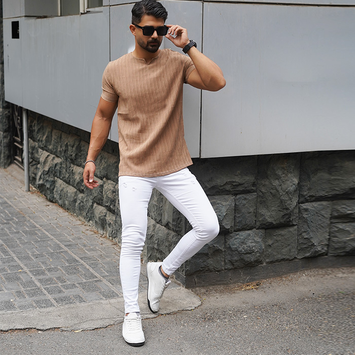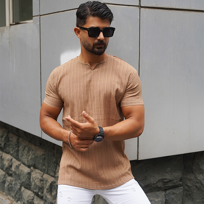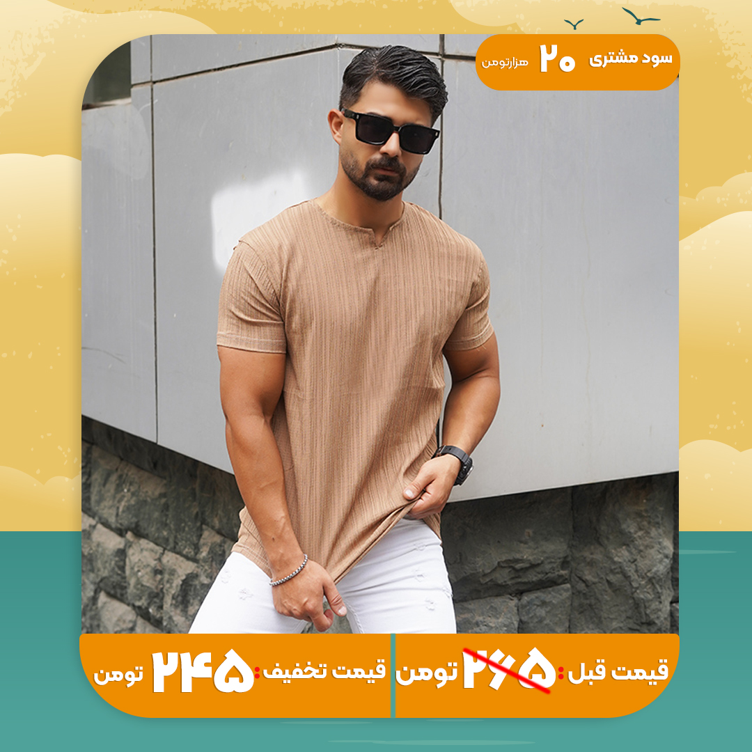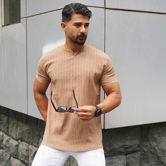 تیشرت مردانه خاکی آستین کوتاه مدل Bardia