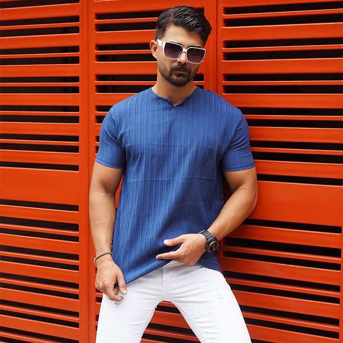 تیشرت مردانه آبی آستین کوتاه مدل Bardia