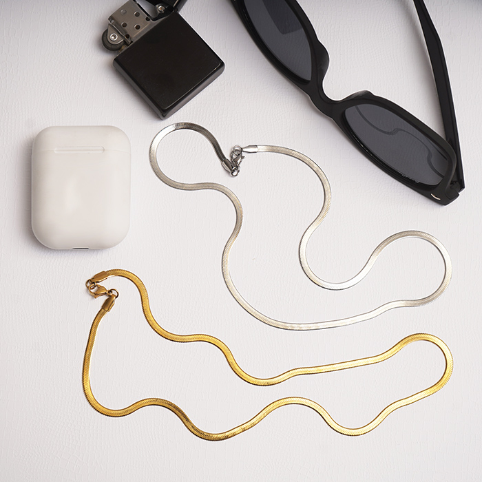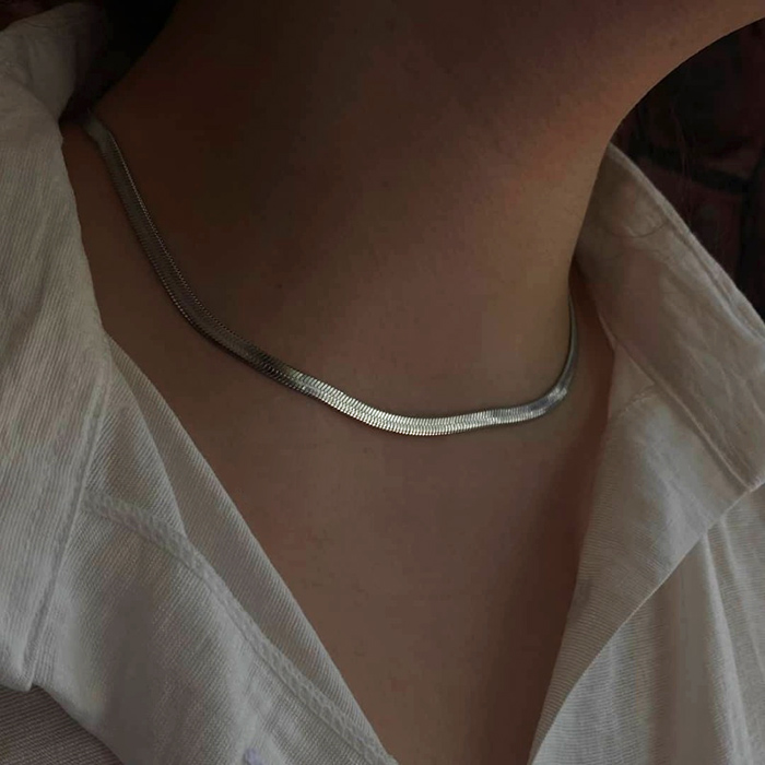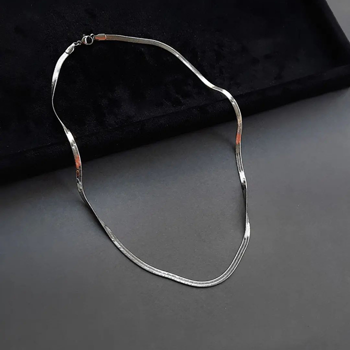 گردنبند نقره ای مدل fered جنس : استیل ضد زنگ طول زنجیر گردنبند : 46cm رنگ : نقره ای