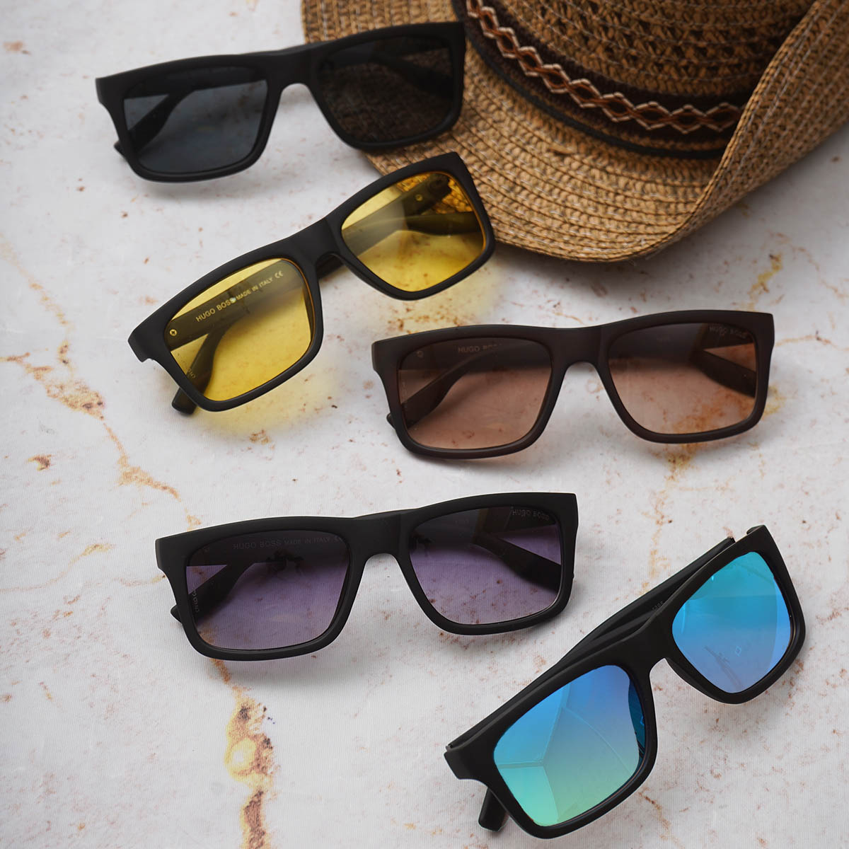 عینک مردانه مشکی صفحه بنفش مدل Hugo