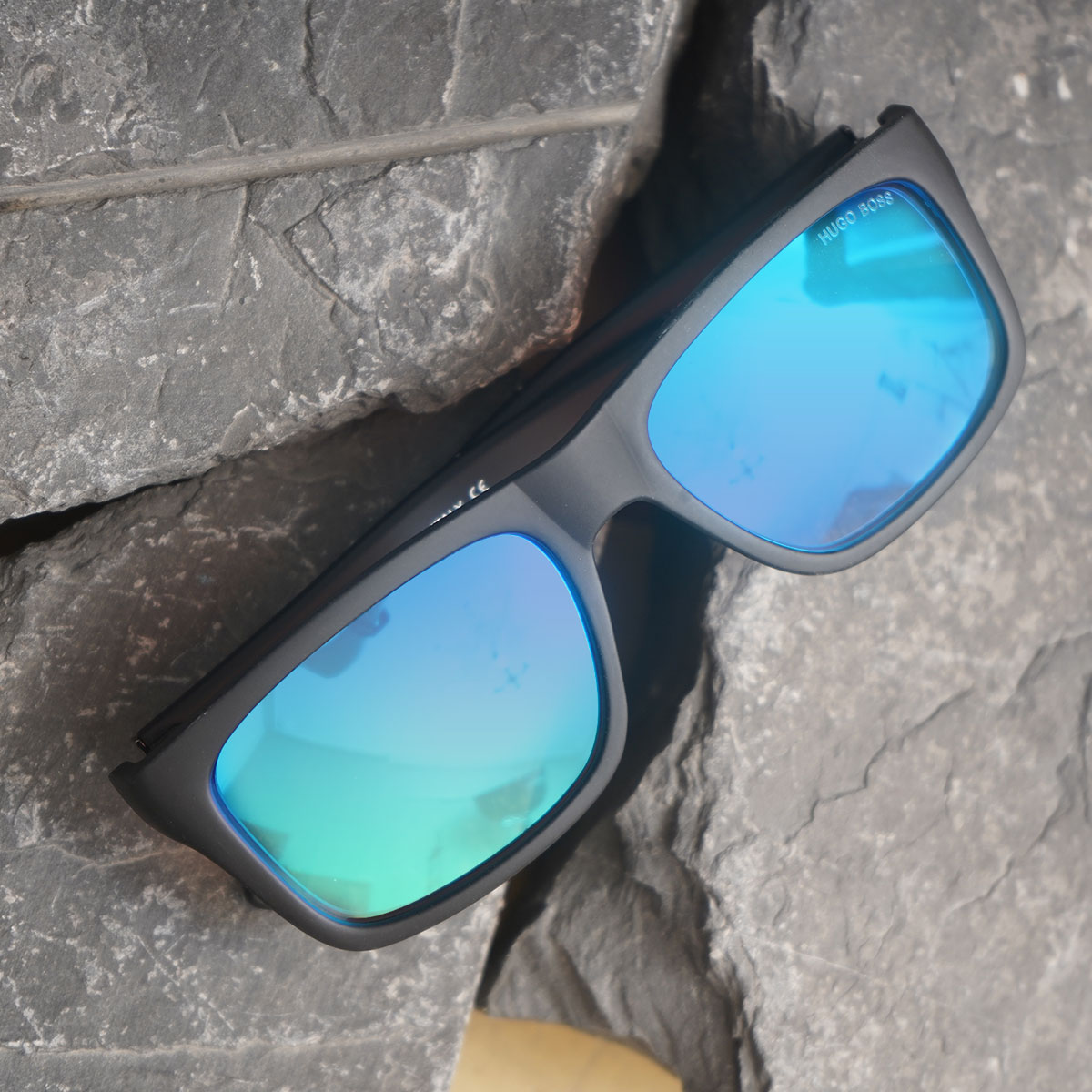 عینک مردانه مشکی صفحه آبی مدل Hugo