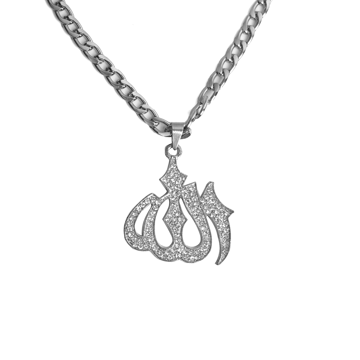 گردنبند نقره ای مدل Allah جنس: استیل ضد زنگ طول گردنبند: 50 سانتی متر رنگبندی : نقره ای