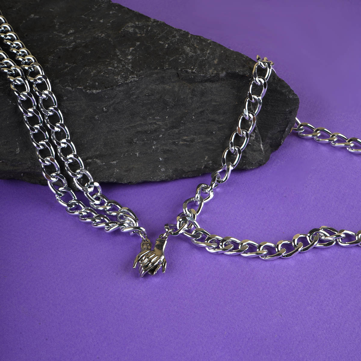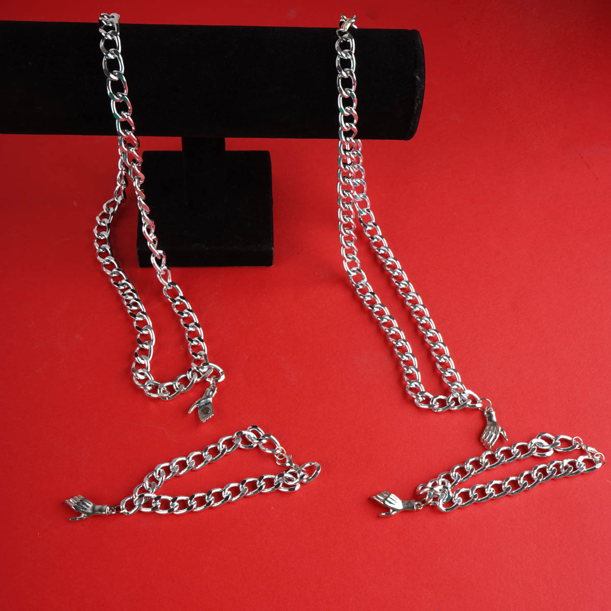 ست گردنبند و دستبند زوج نقره ای مدل TH