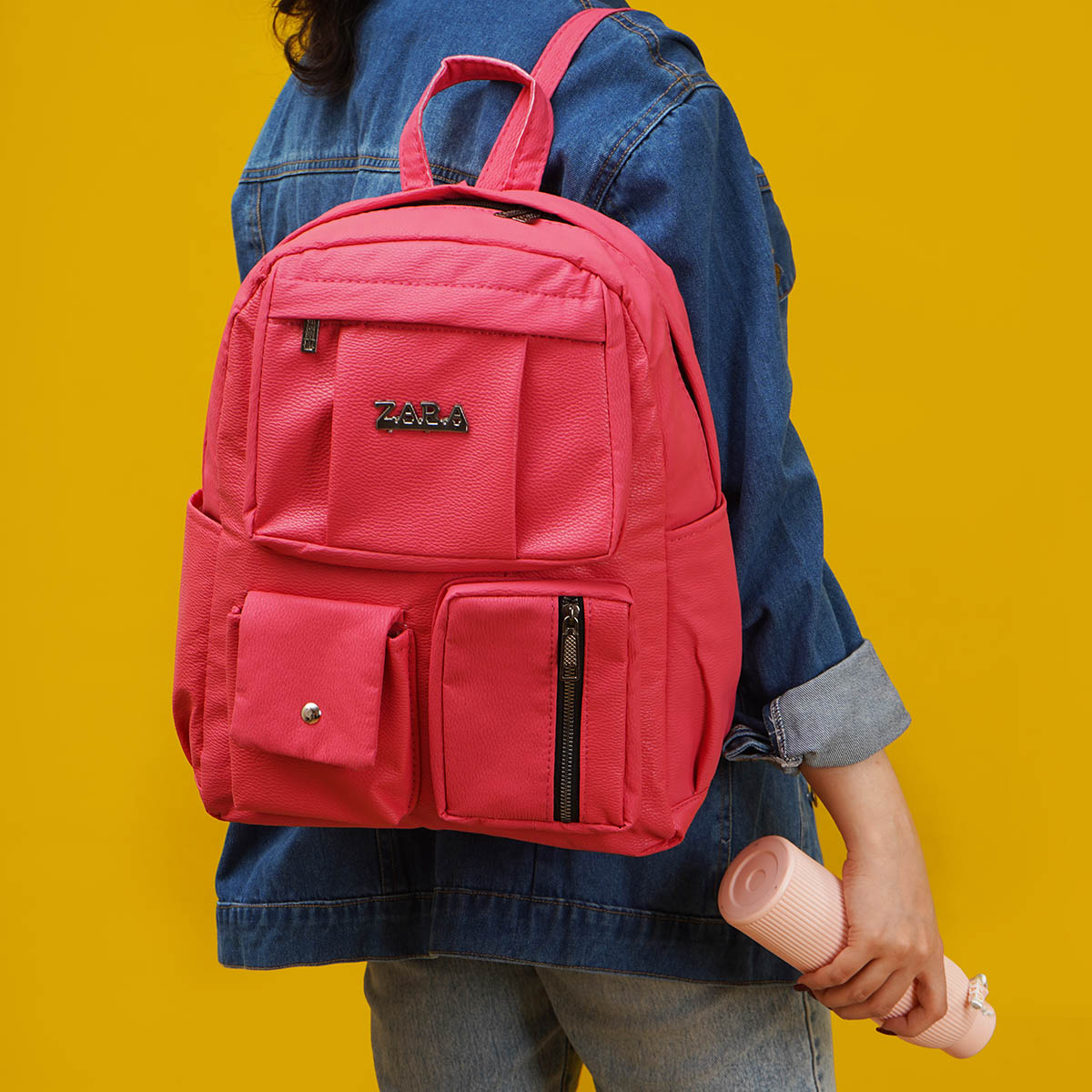 کوله پشتی چرم زنانه صورتی مدل ZARA
