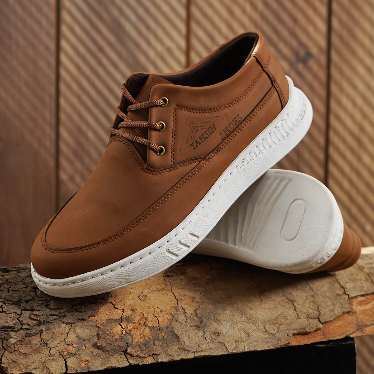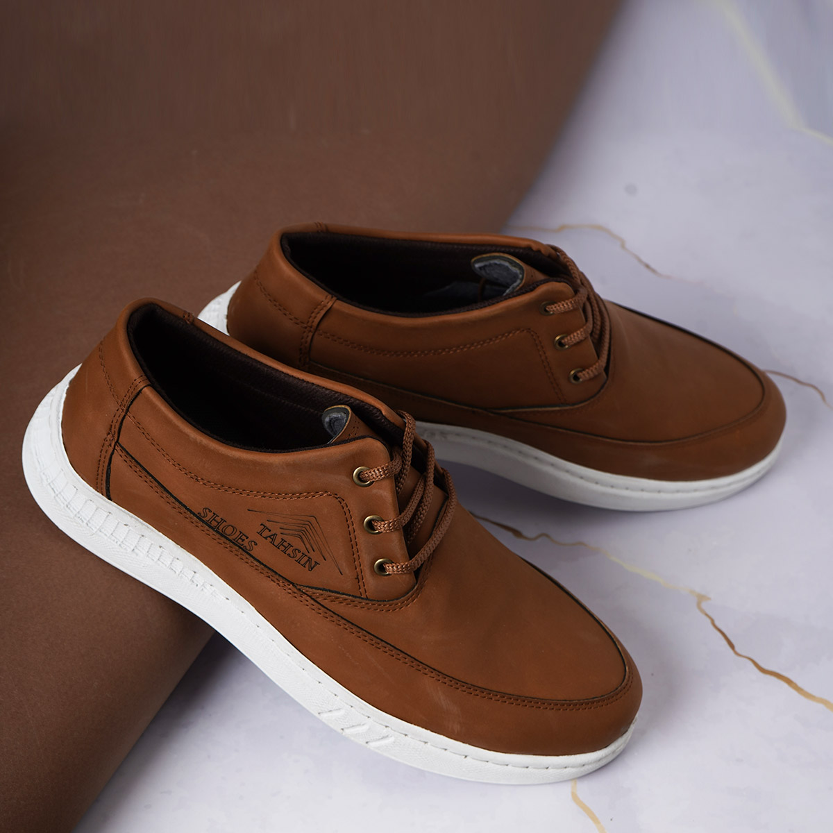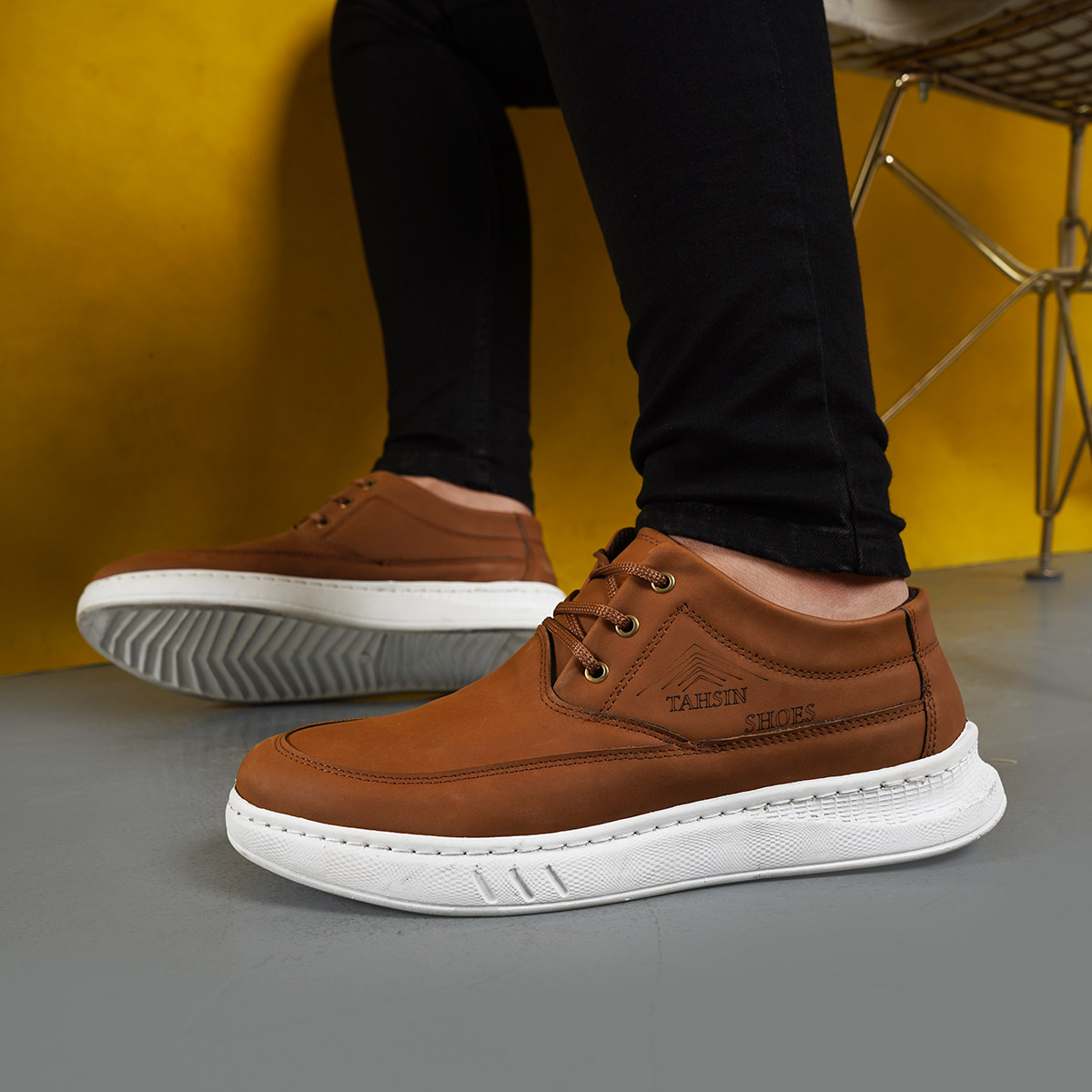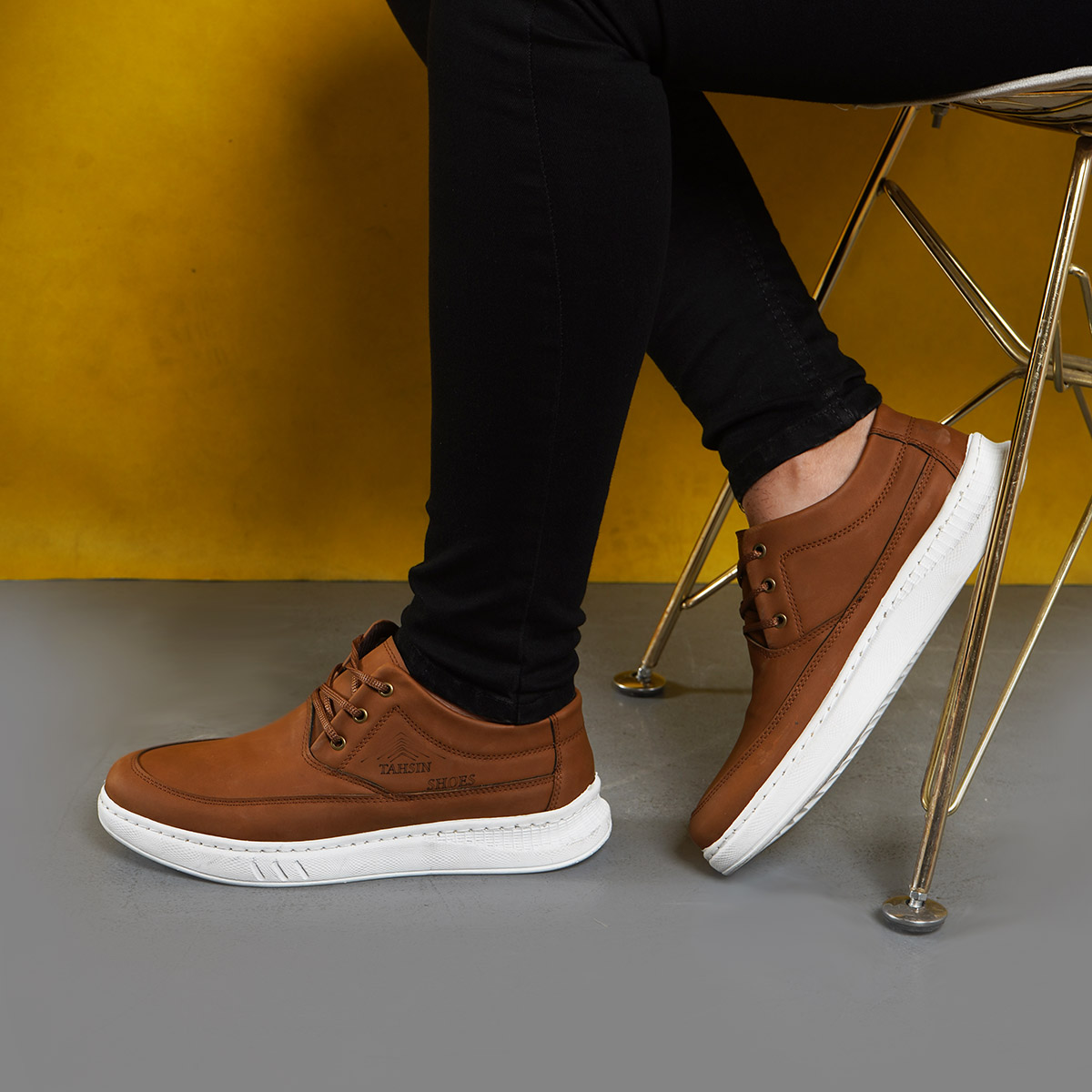 کفش مردانه عسلی زیره سفید مدل Tahsin