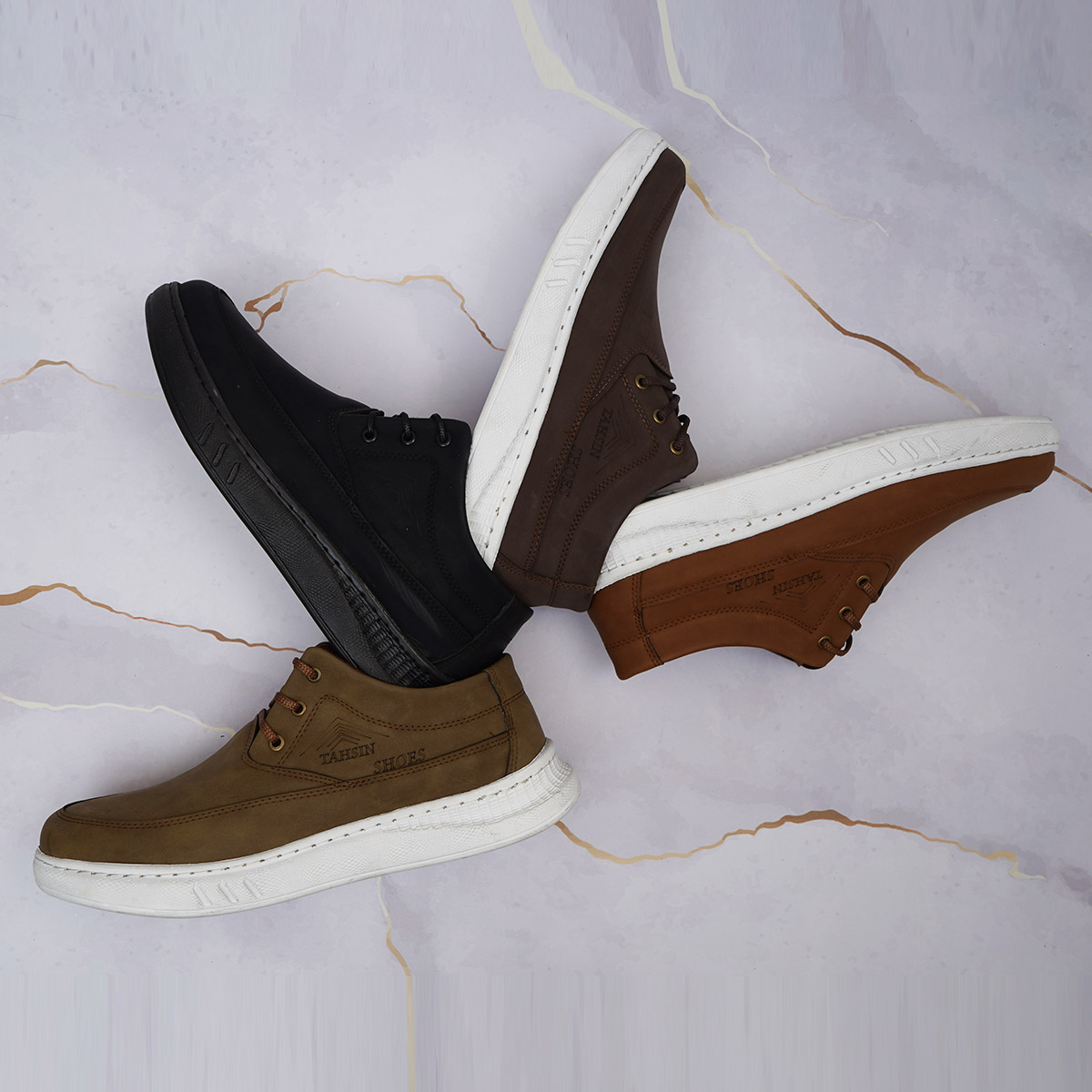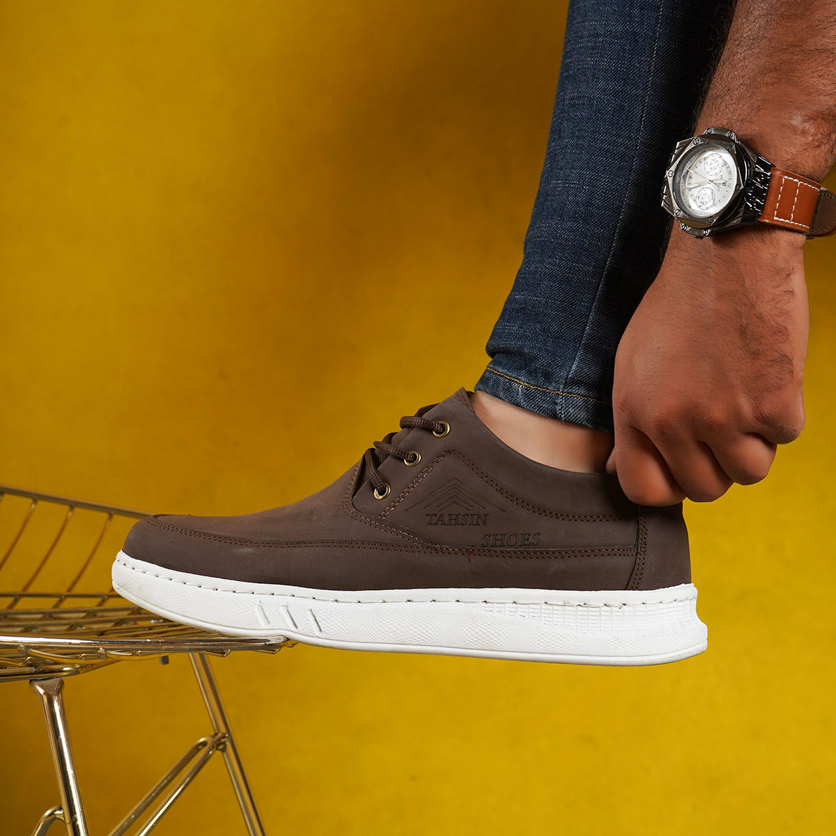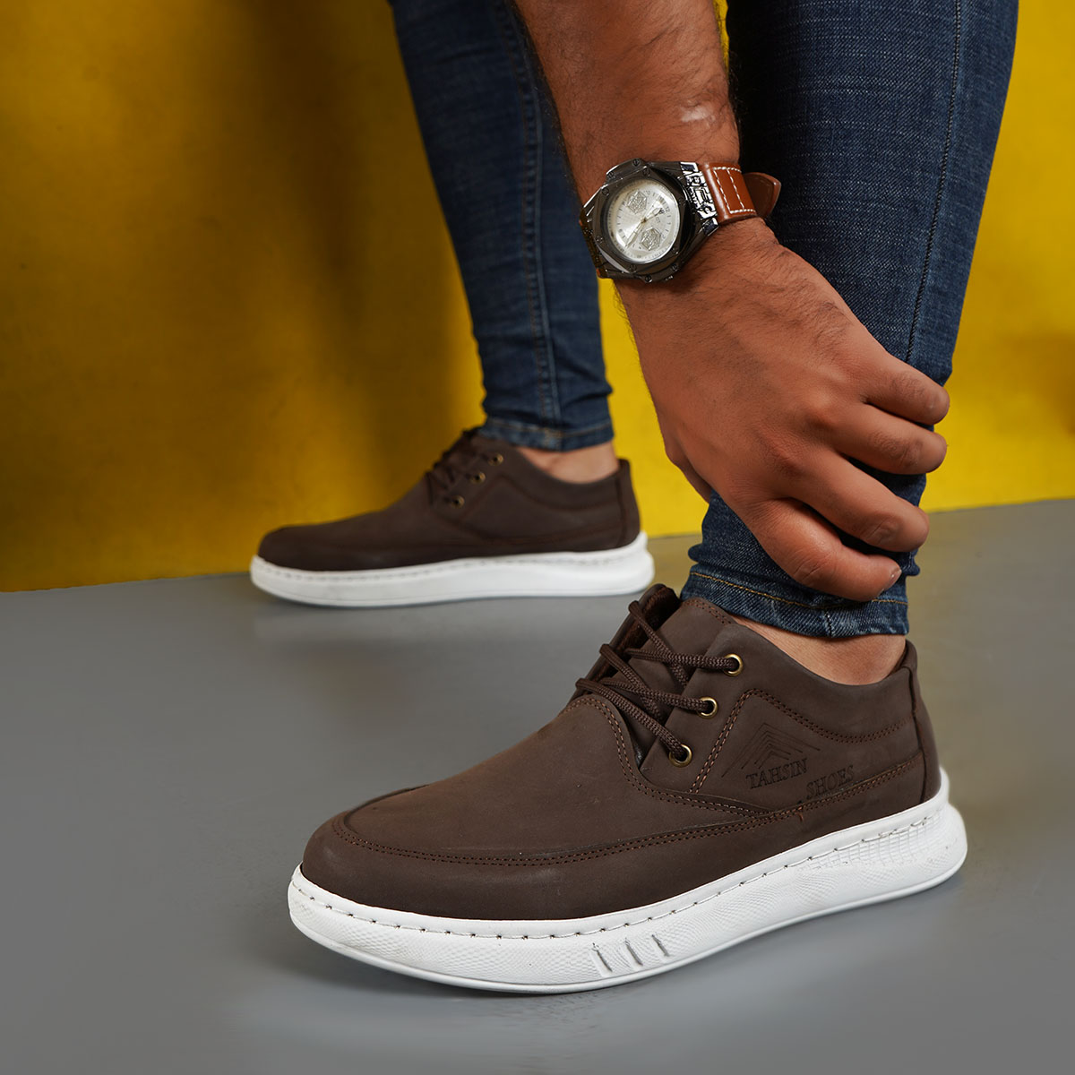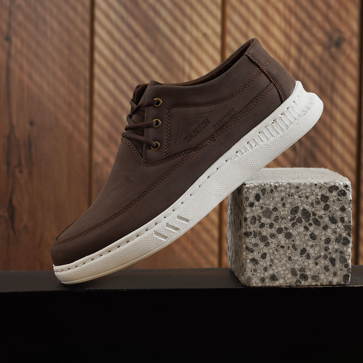 کفش مردانه قهوه ای زیره سفید مدل Tahsin