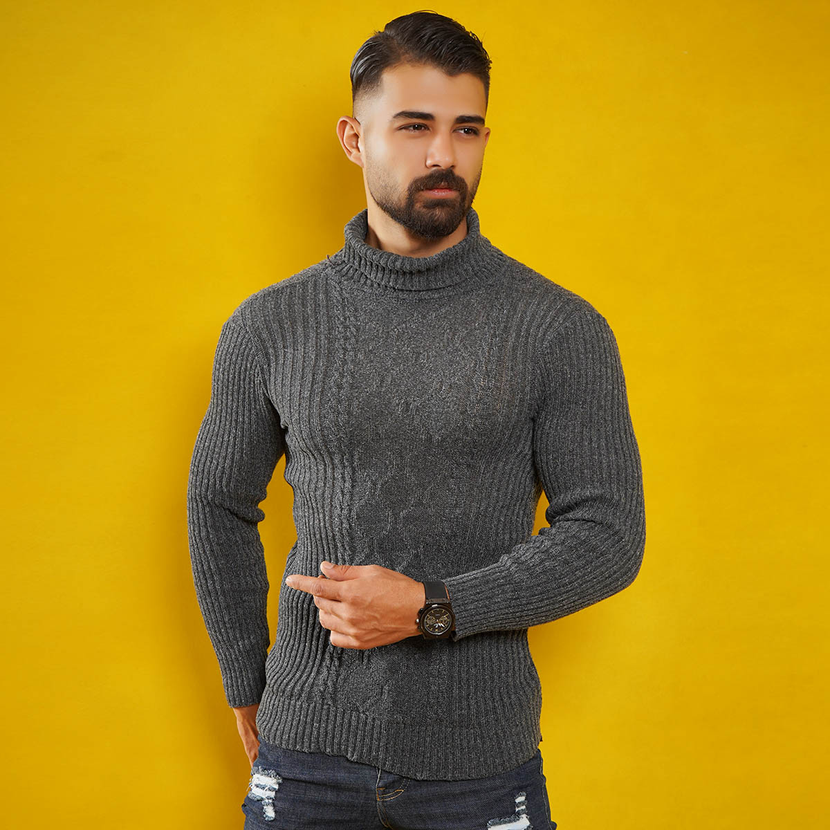 پلیوربافت مردانه ذغالی یقه اسکی مدل Hakan