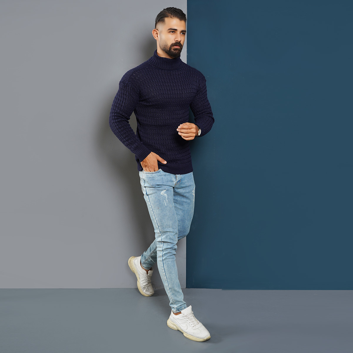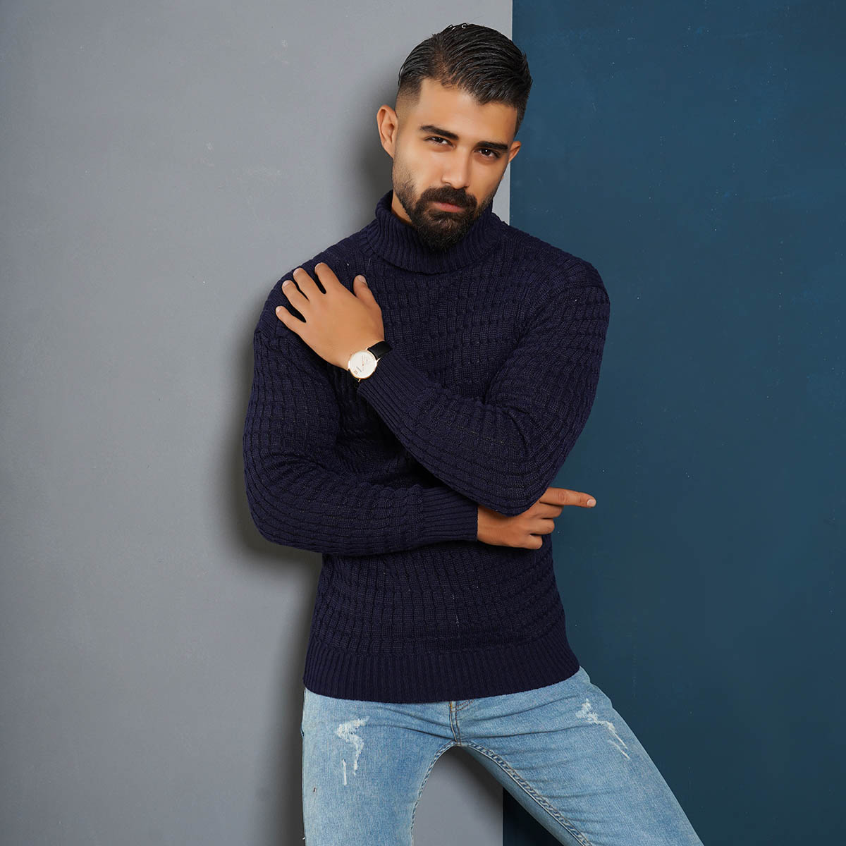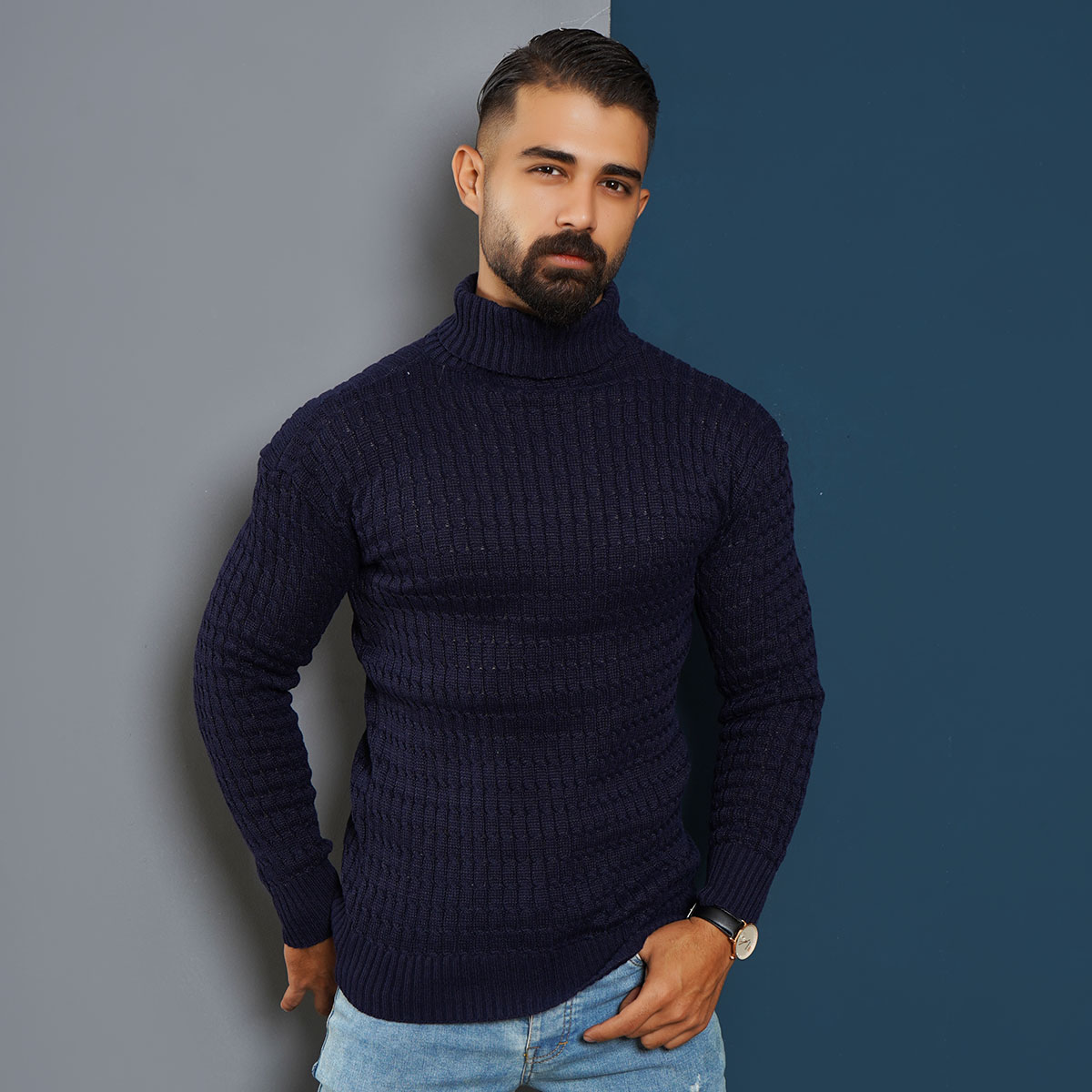 پلیوربافت مردانه سرمه ای یقه اسکی مدل Pouyan