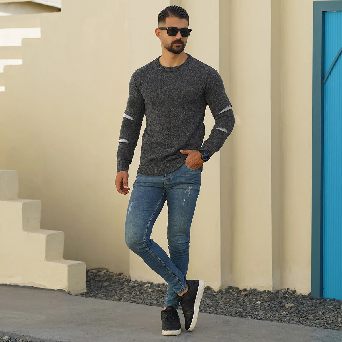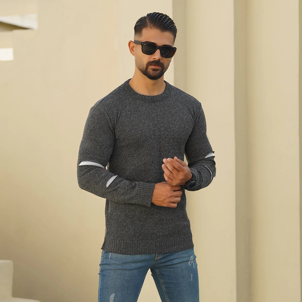 پلیور مردانه ذغالی زاپ سفید مدل solan