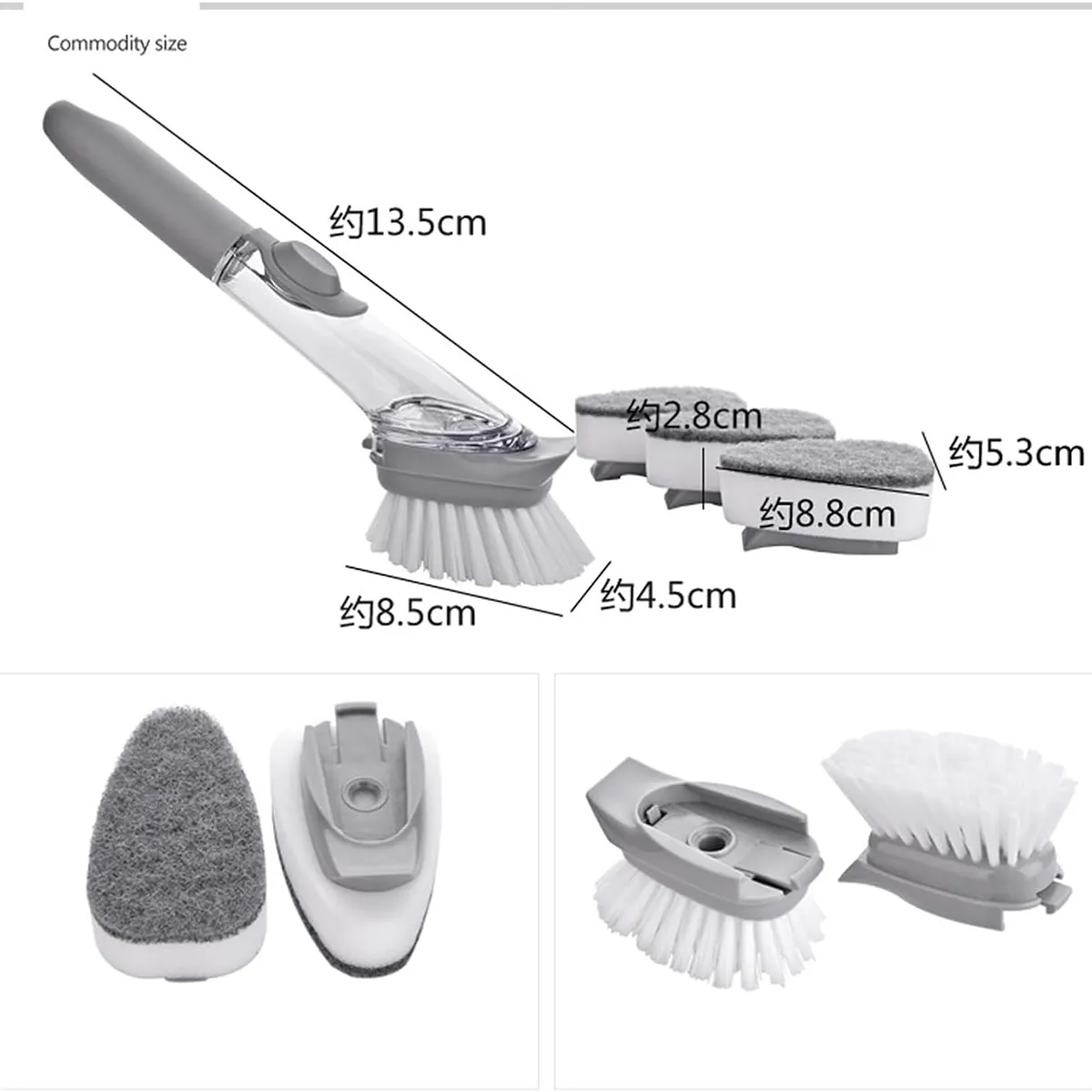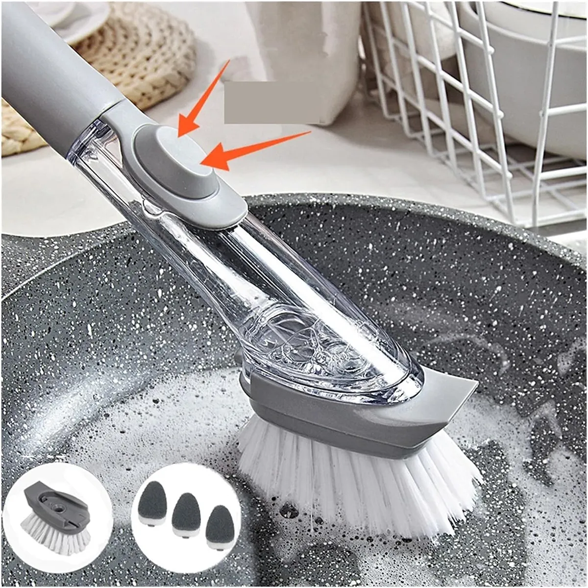 ابزار تمیز کردن آشپزخانه: سر متخلخل، دسته پلاستیکی ارگونومیک قابل استفاده مجدد، سر قابل تعویض، پر شده با صابون برای تمیز نگه داشتن آشپزخانه. یک پد تمیز کردن محکم روی اسفنج تمیزکننده می تواند قدرت شستشوی بیشتری را فراهم کند.