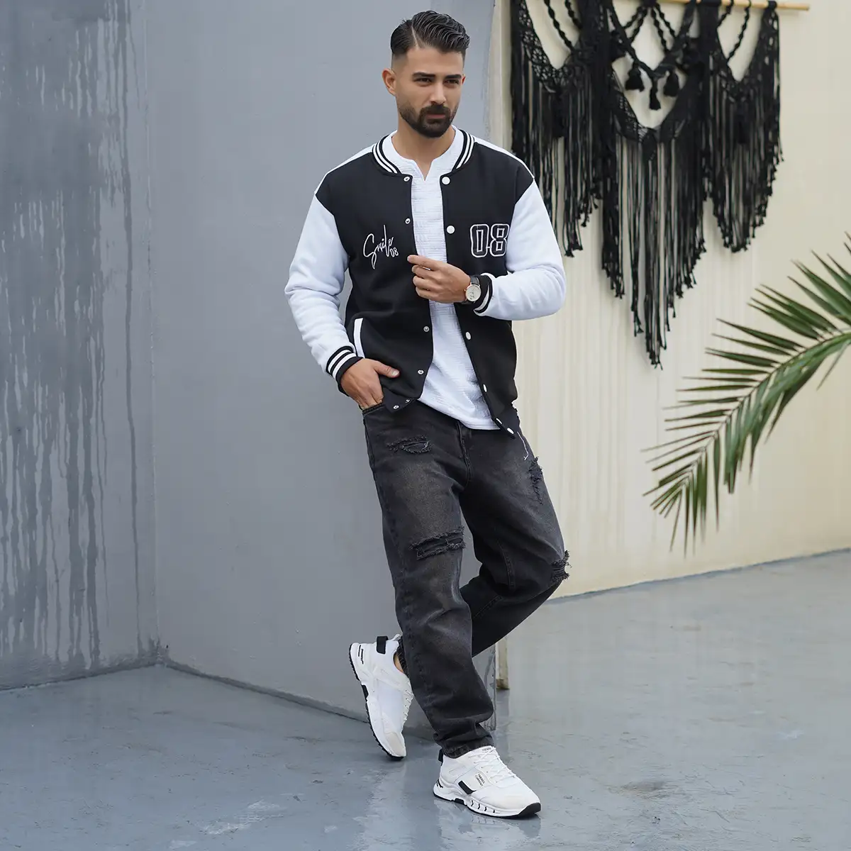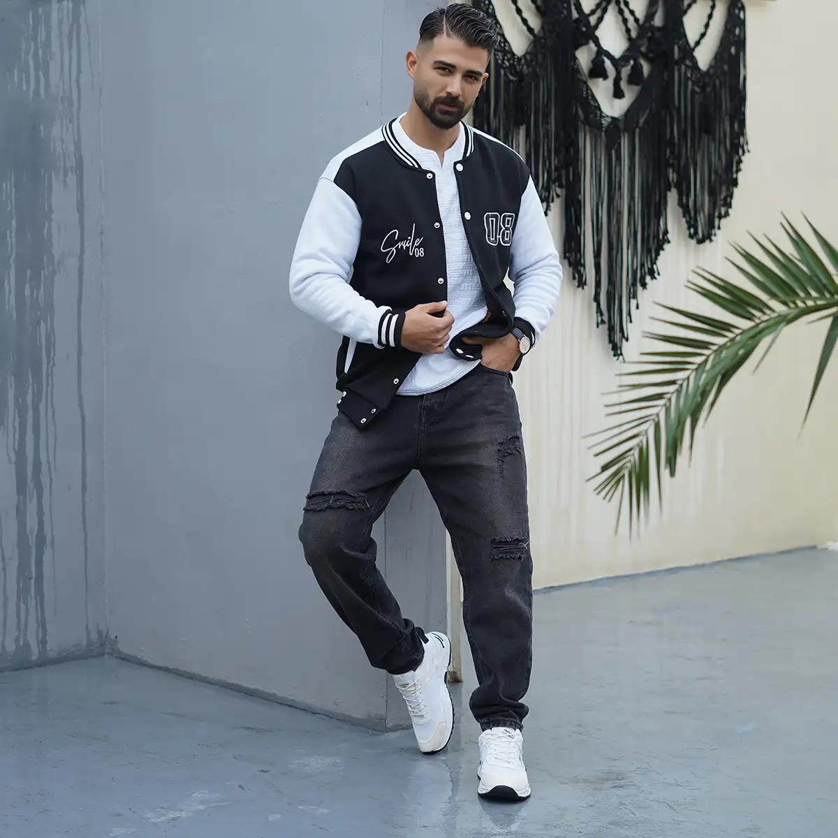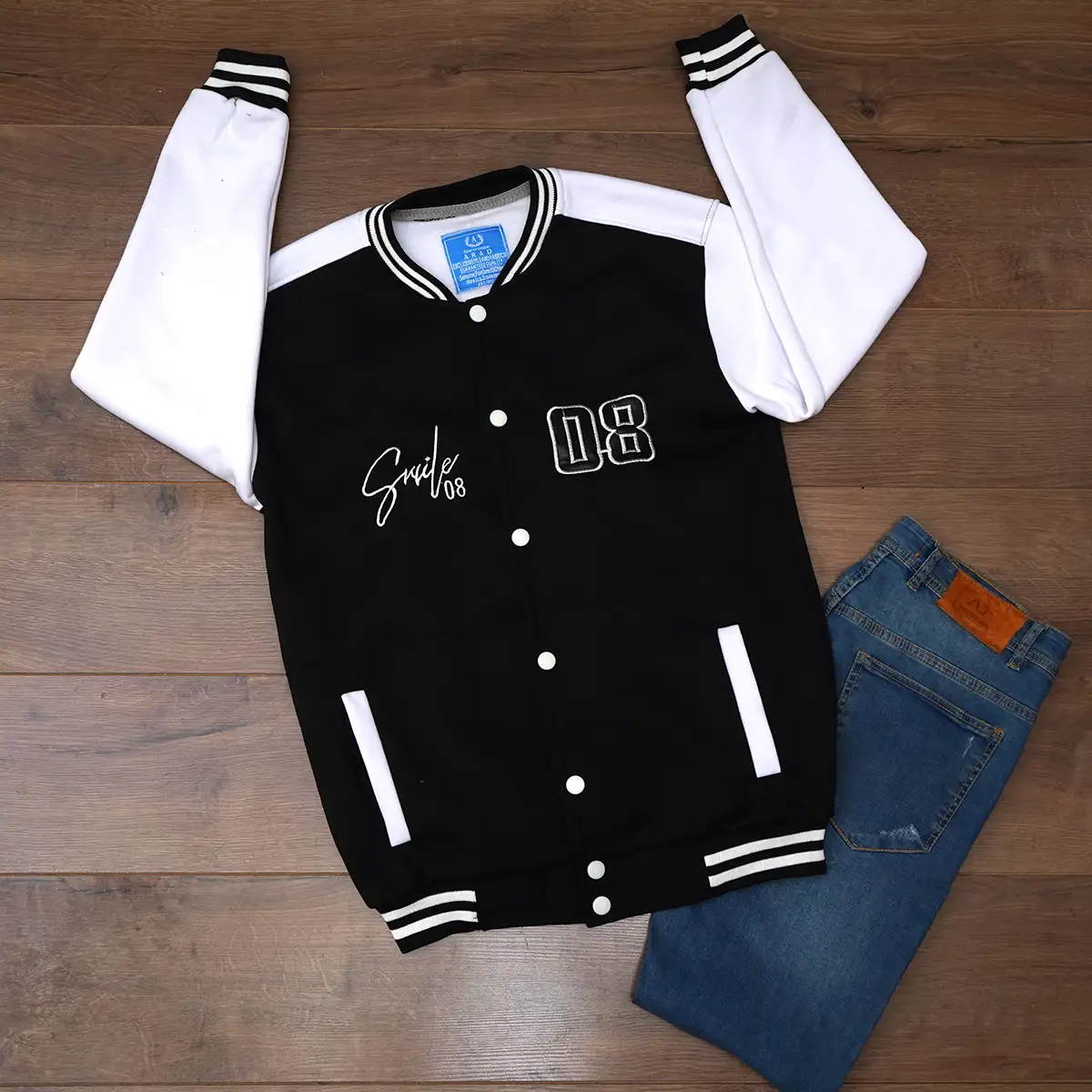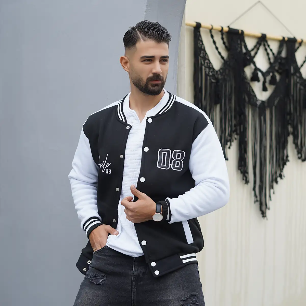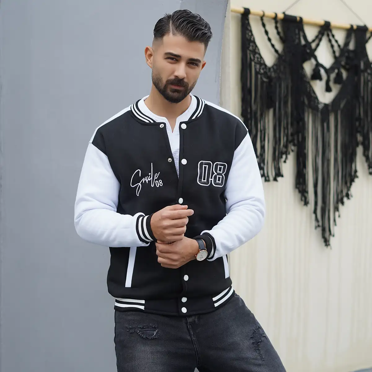 بامبر جکت مردانه مشکی مدل Baseball