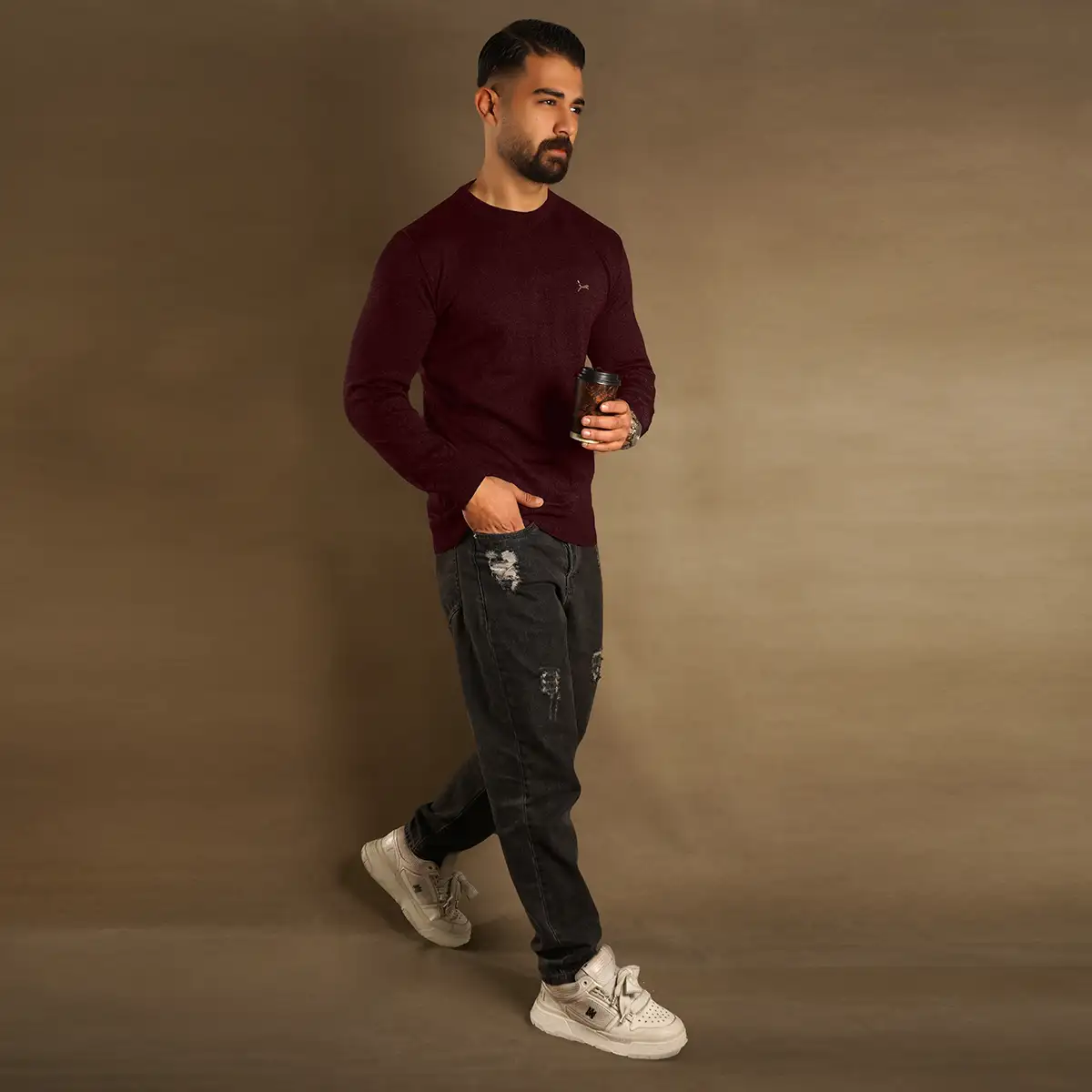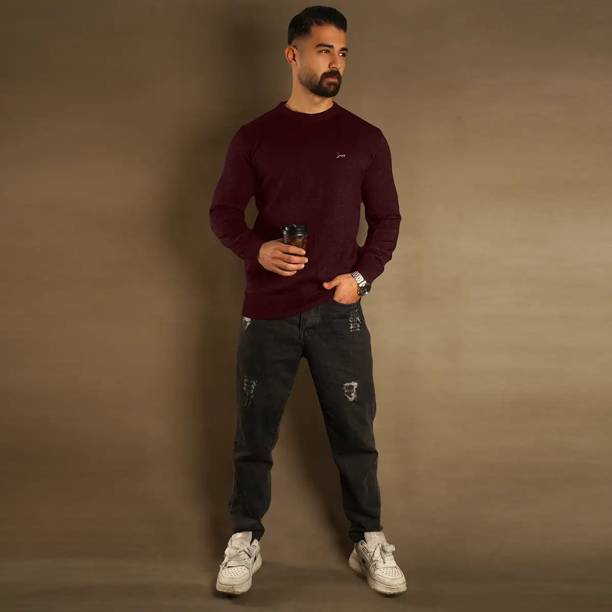 پلیور یقه گرد پوما زرشکی مدل Danyal