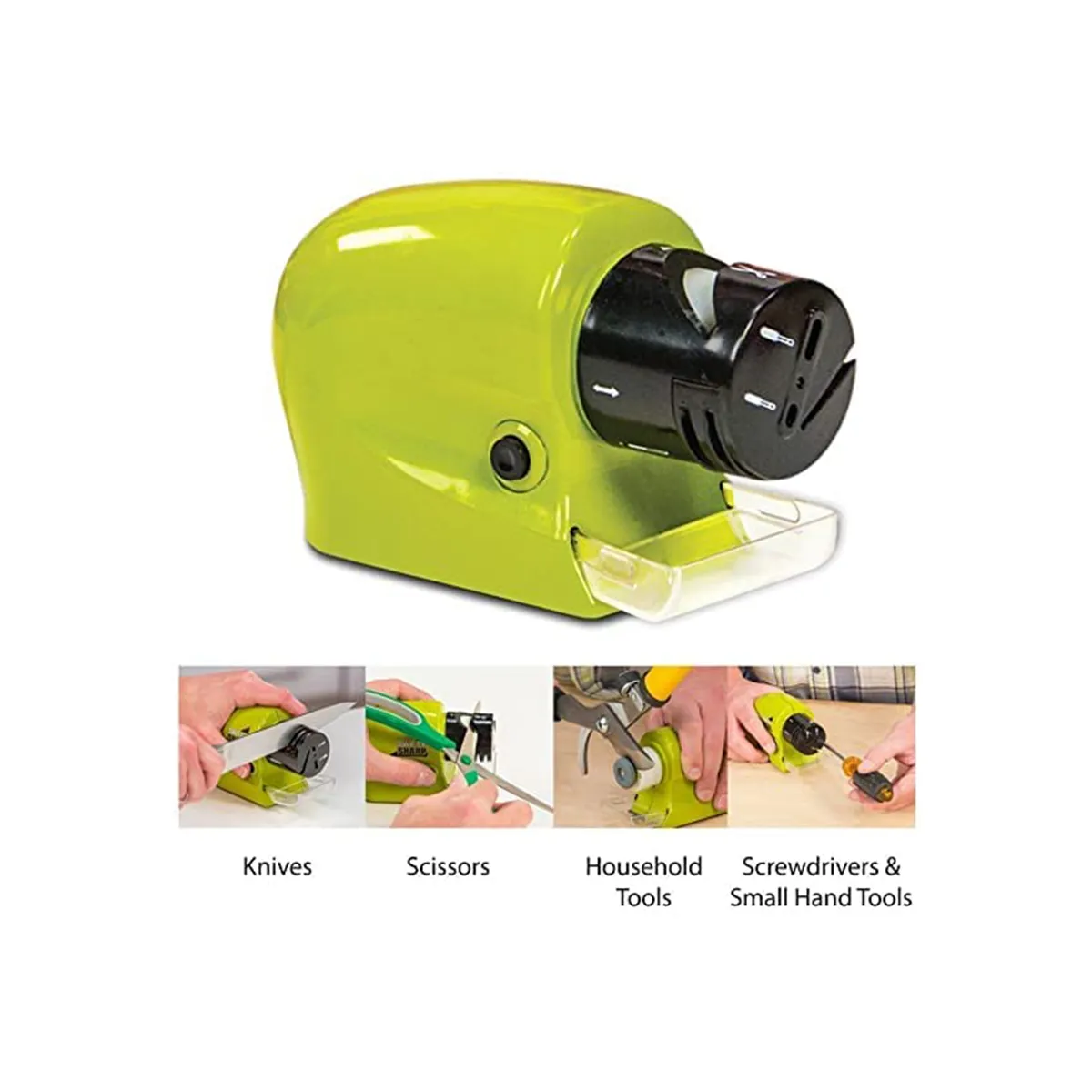چاقو تیزکن برقی سویفتی شارپ یک چاقو تیز کن حرفه ای با طراحی جمع و جور با ابعاد ۶*۹*۱۵ سانتی متر است. این چاقو تیز کن سبک با ۴ باتری AA کار می کند و با فشار دادن دکمه on سنگ آن به چرخش در آمده و شما می توانید انواع چاقو، قیچی و ابزار الات خانگی را با آن تیز نمایید.