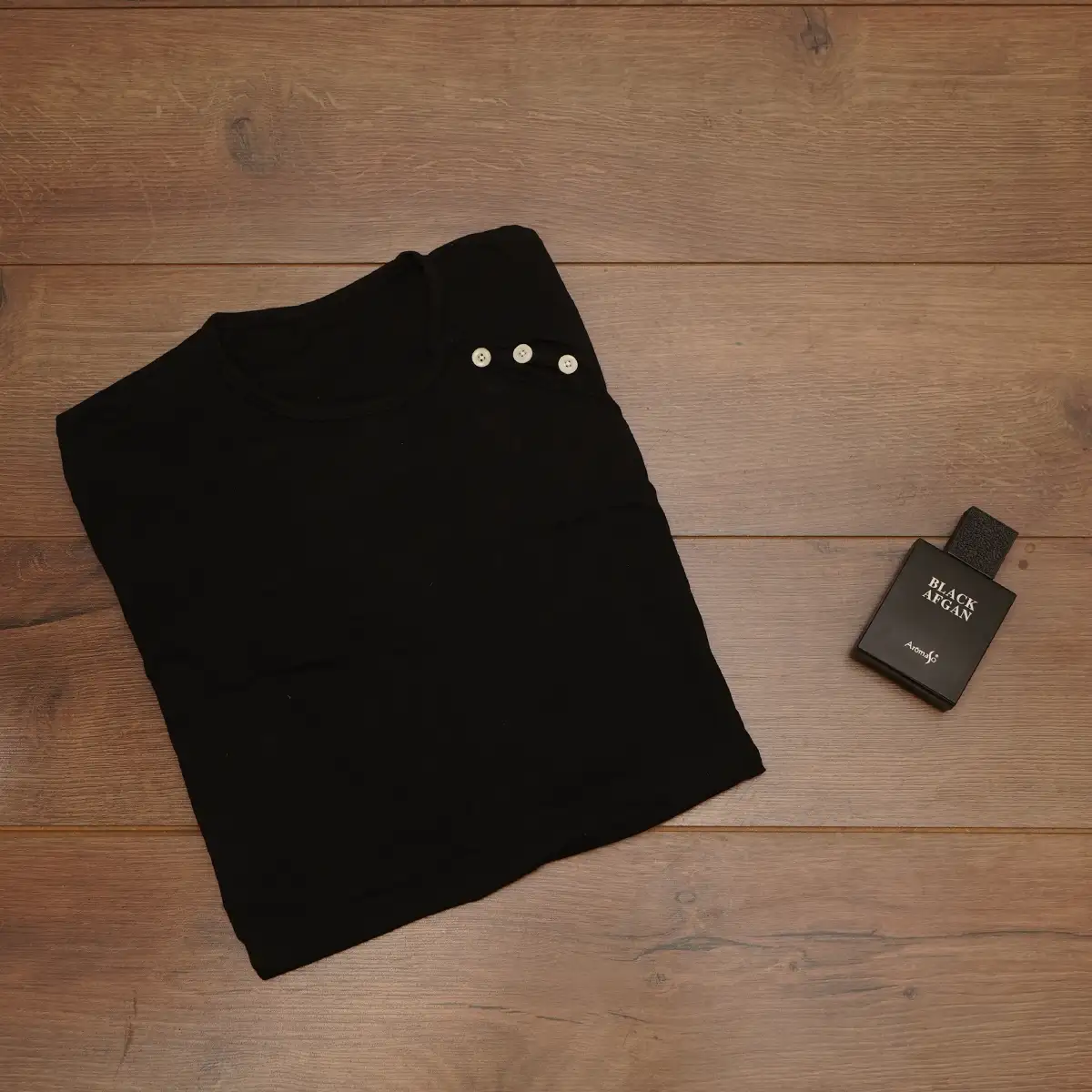 تیشرت مردانه مدل NESO مشکی(طرح سه دکمه)
