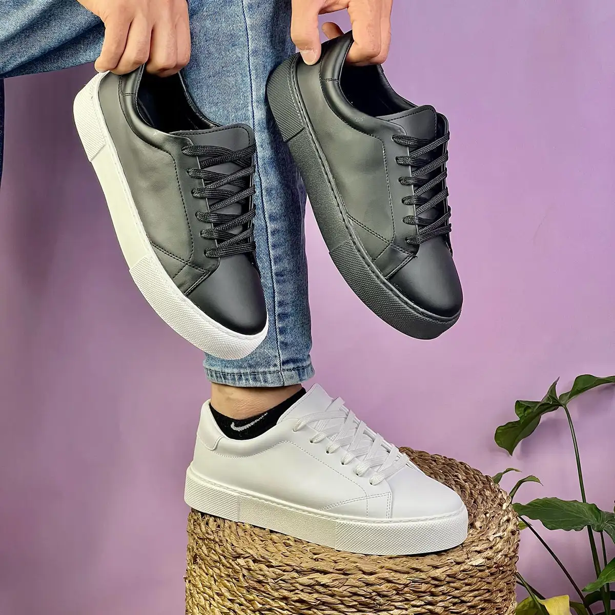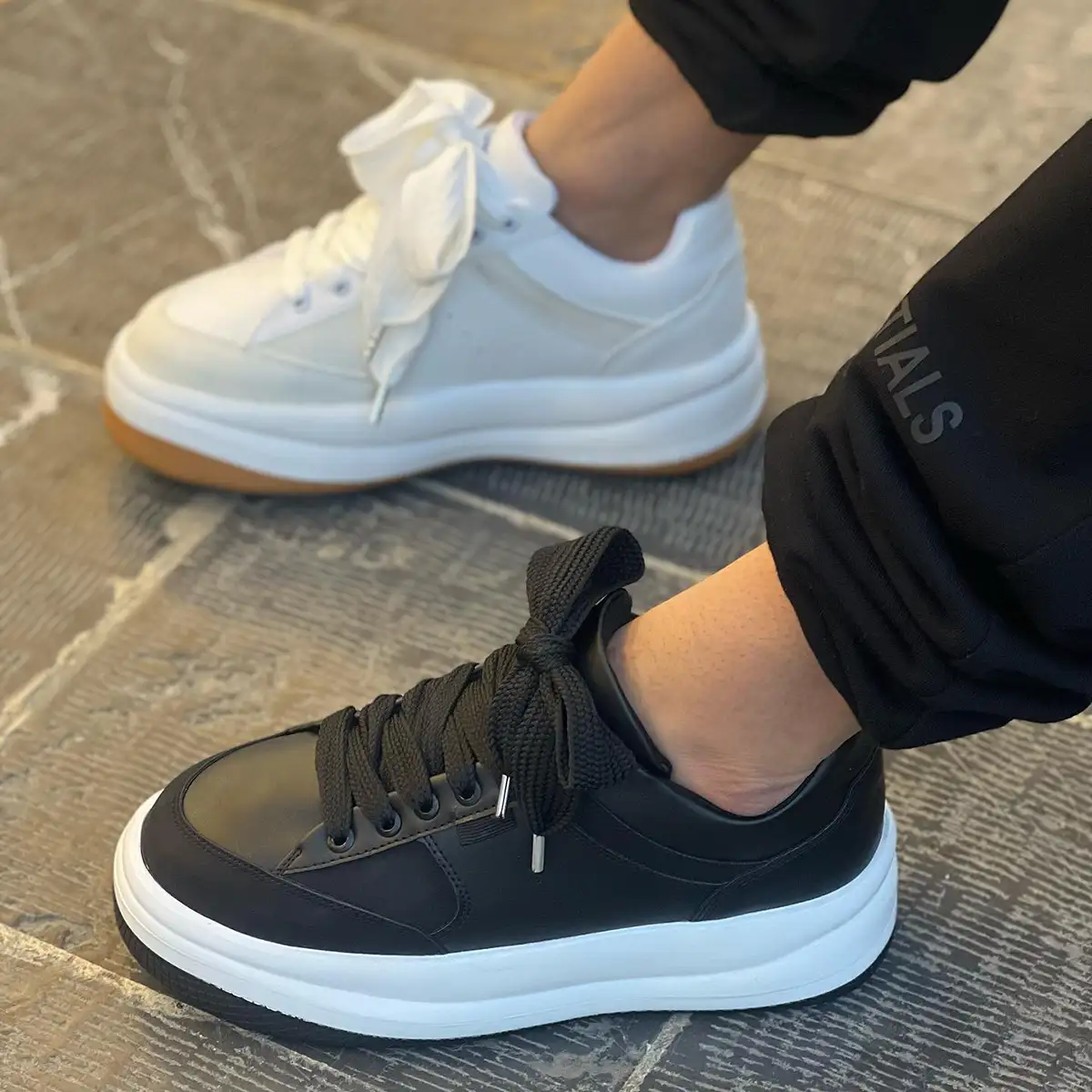 کفش تخت مشکی زیره سفید مردانه مدل MANIN