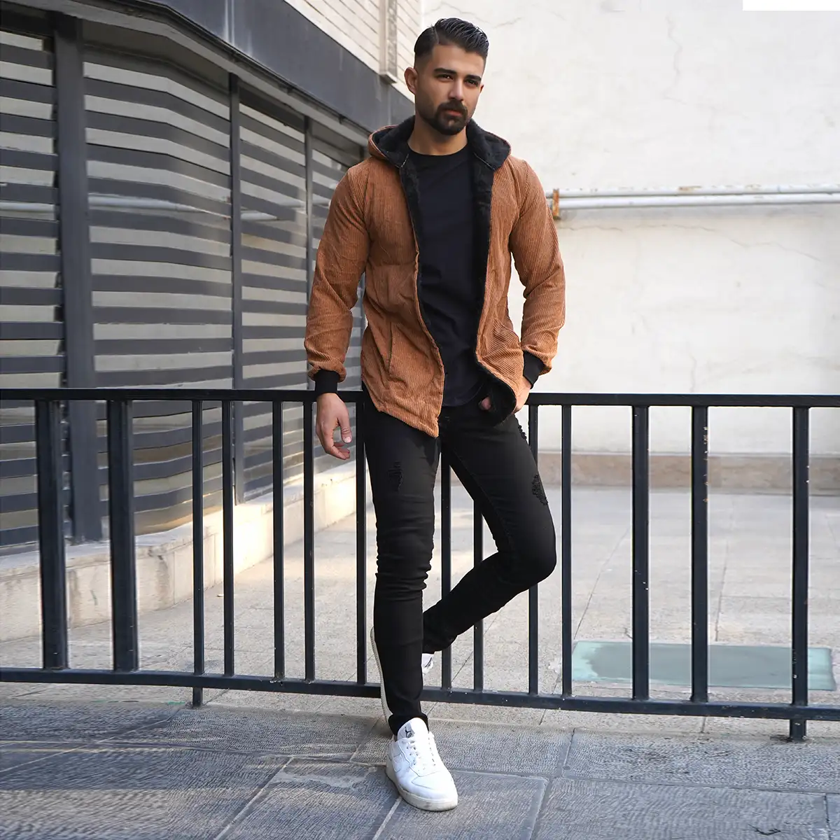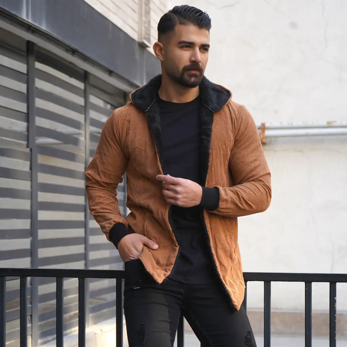 شنل مردانه مخمل کبریتی قهوه ای مدل Alam