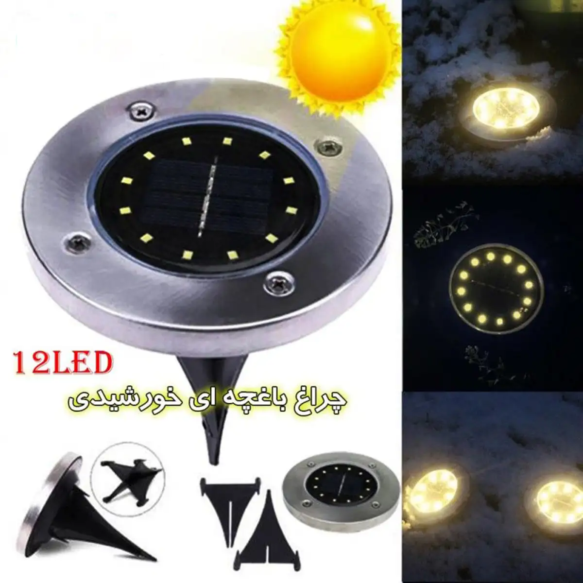 این محصول ضد آب و بی نیاز از سیم کشی ساخته شده از جنس استیل و پلاستیک مقاوم دارای ۱۲ ال ای دی به همراه باتری داخلی و پایه نیزه ای میباشد. باتری داخلی در طول روز از طریق انرژی خورشید شارژ میشود و در هنگام تاریکی هوا ، چراغ ها به صورت کاملا اتوماتیک روشن میشوند و به محیط شما نور ، روشنایی و زیبایی می بخشند. این محصول مناسب برای استفاده در باغ ، ویلا ، باغچه و مسیر های پیاده رو به همراه کلید خاموش دستی درصورت عدم تمایل به روشن شدن در شب های مورد نظر است.