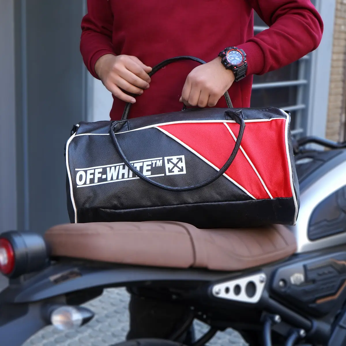 کیف ورزشی off-white مشکی قرمز مدل F90
