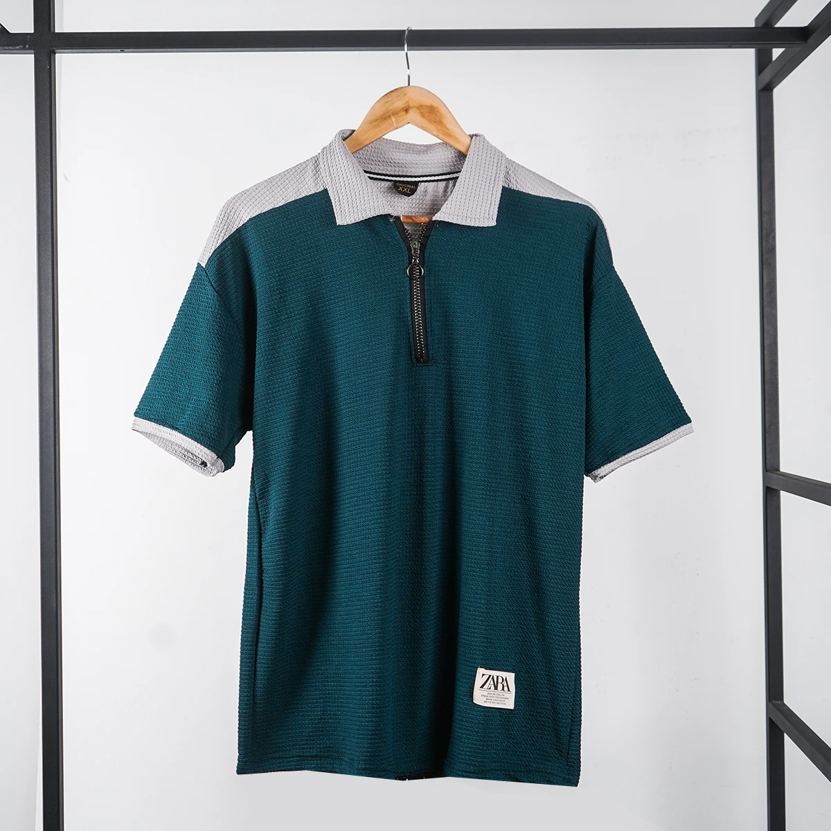 تیشرت مردانه یقه زیپ دار سبز مدل Radon