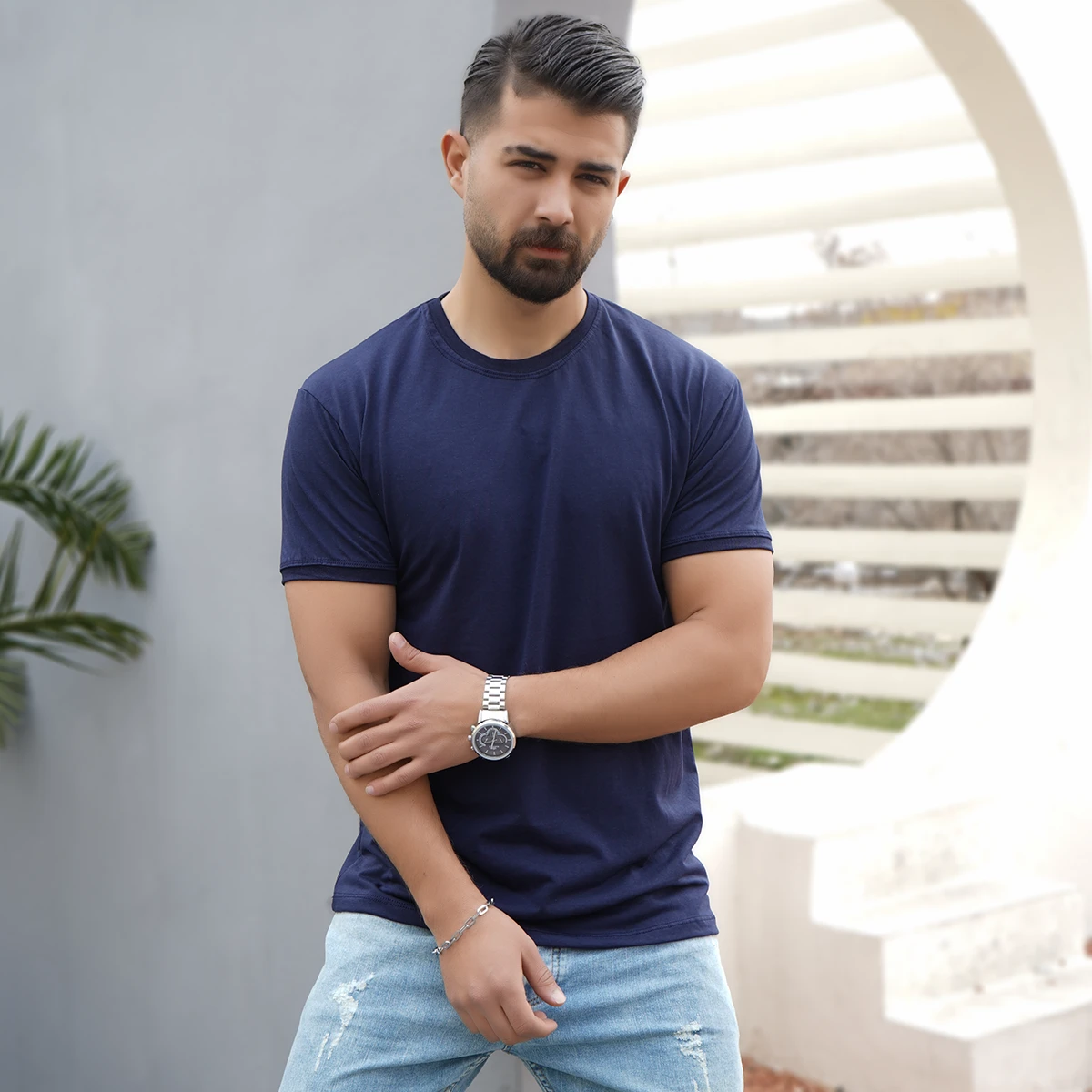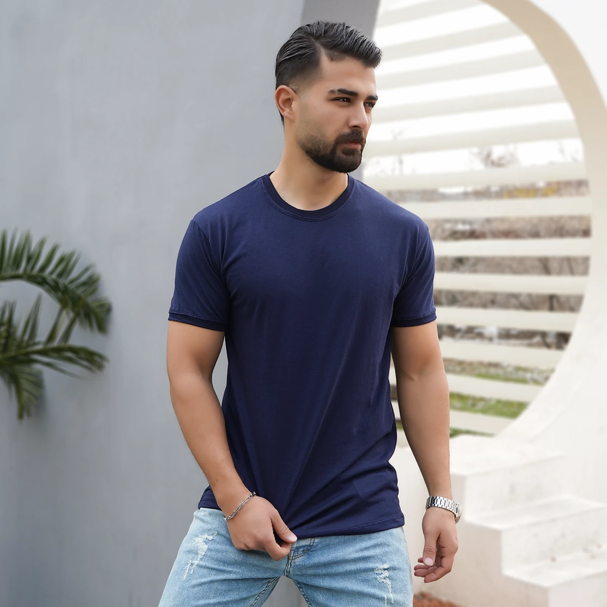 تیشرت ساده سرمه ای مردانه مدل Edvan