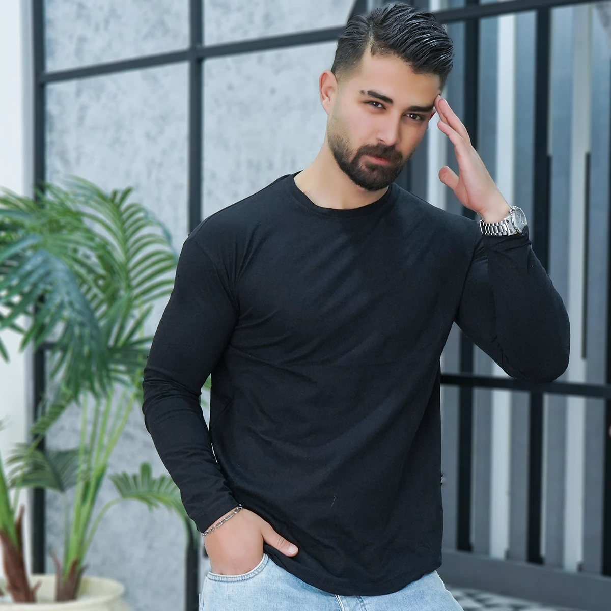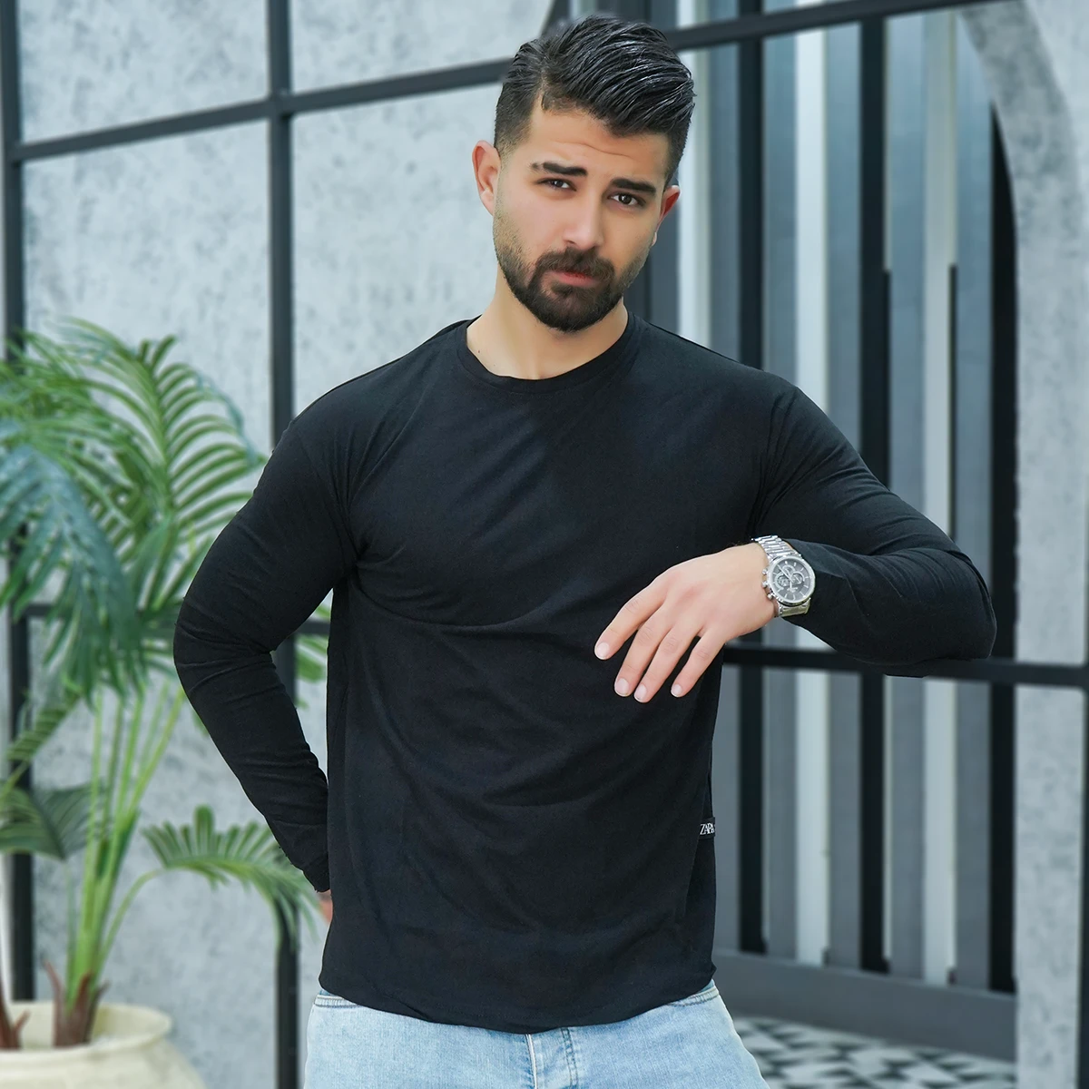 تیشرت آستین بلند مشکی مردانه مدل Vala