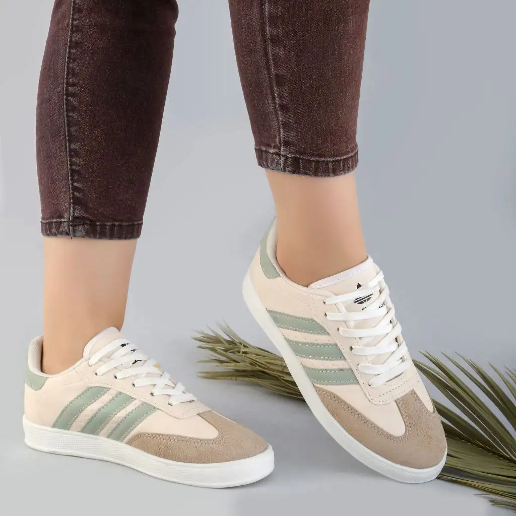 کفش تخت زنانه آدیداس کرم سبز مدل Mehrnaz