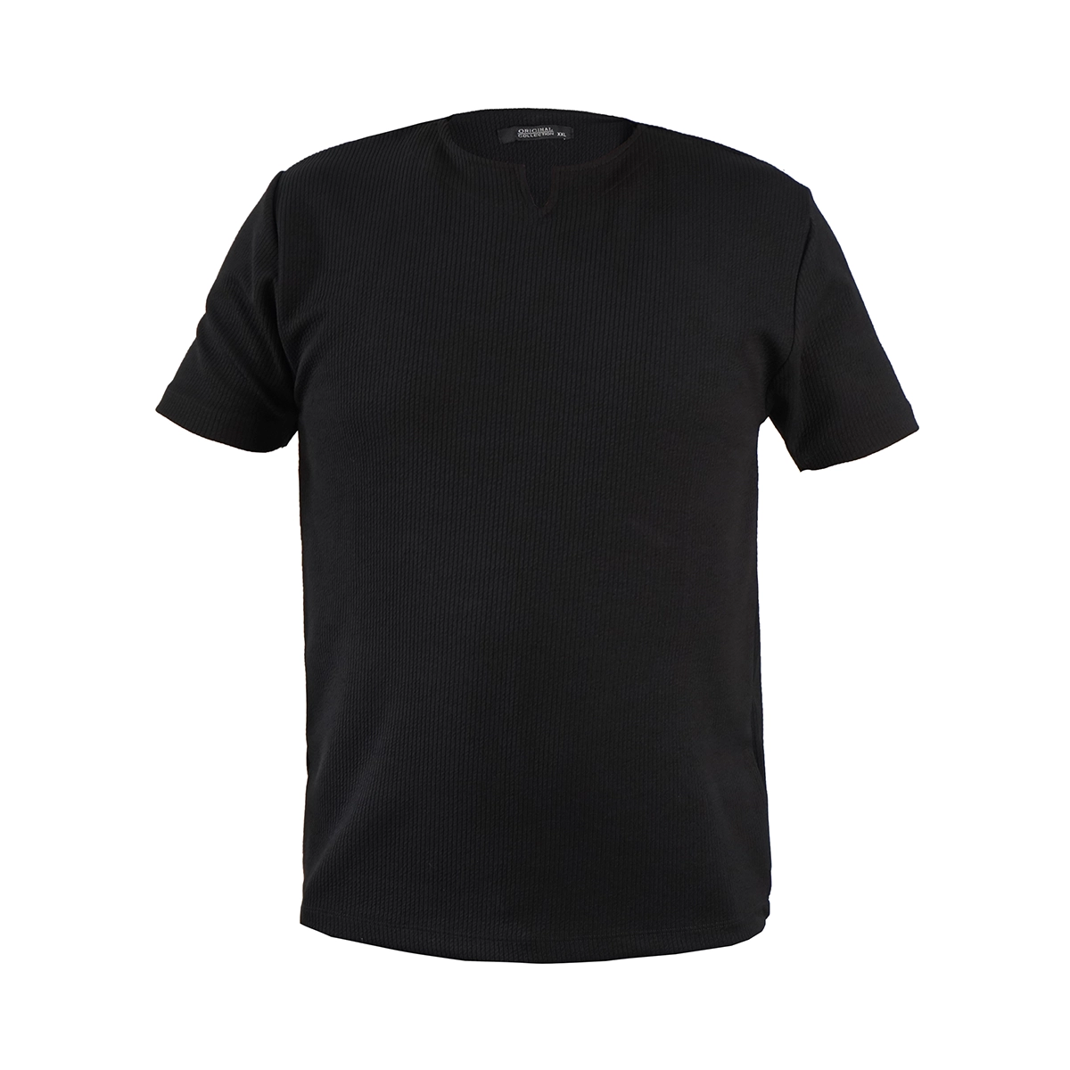 تیشرت آستین کوتاه یقه کوبایی مشکی مردانه مدل Asam