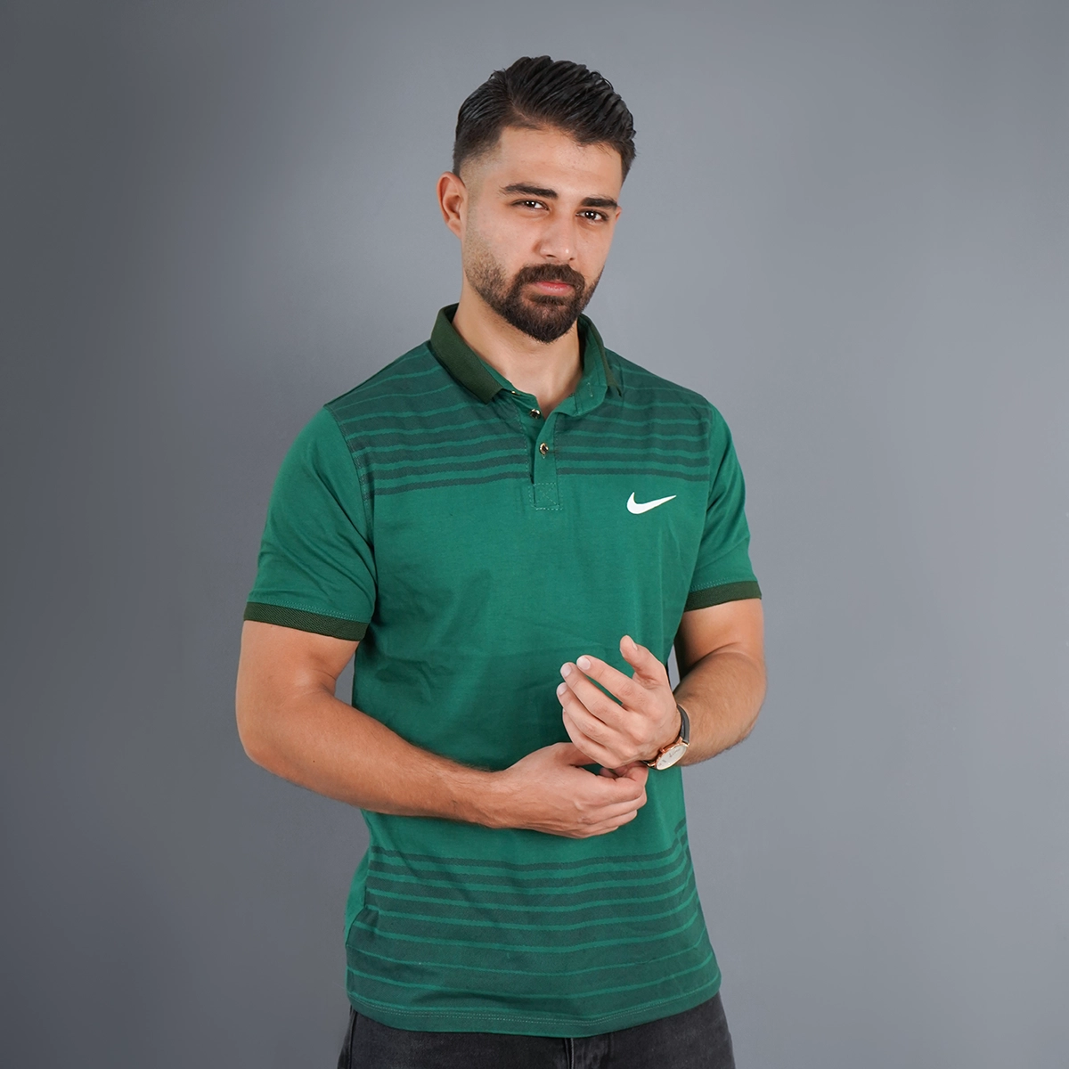 تیشرت یقه دار راه راه سبزمدل Farhan