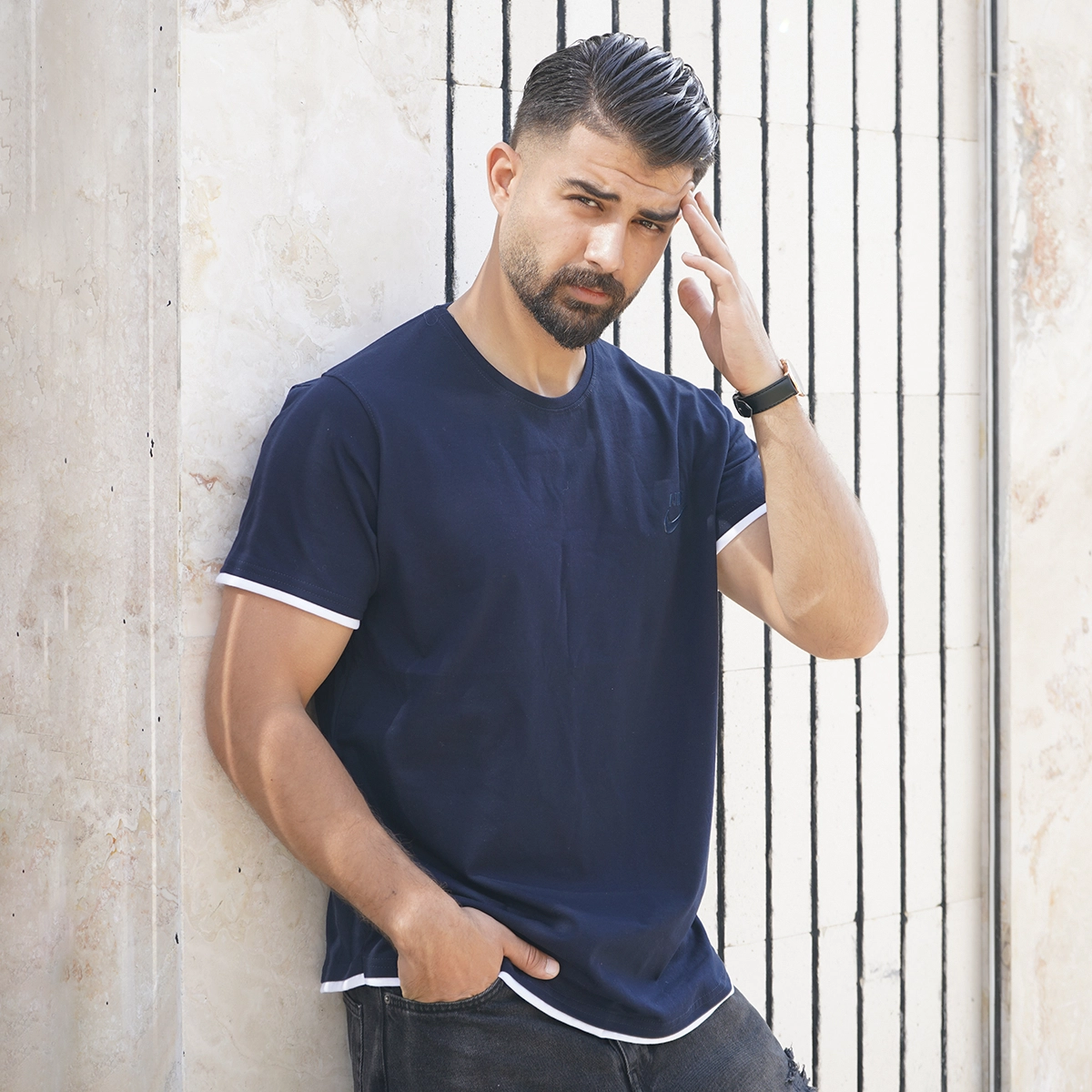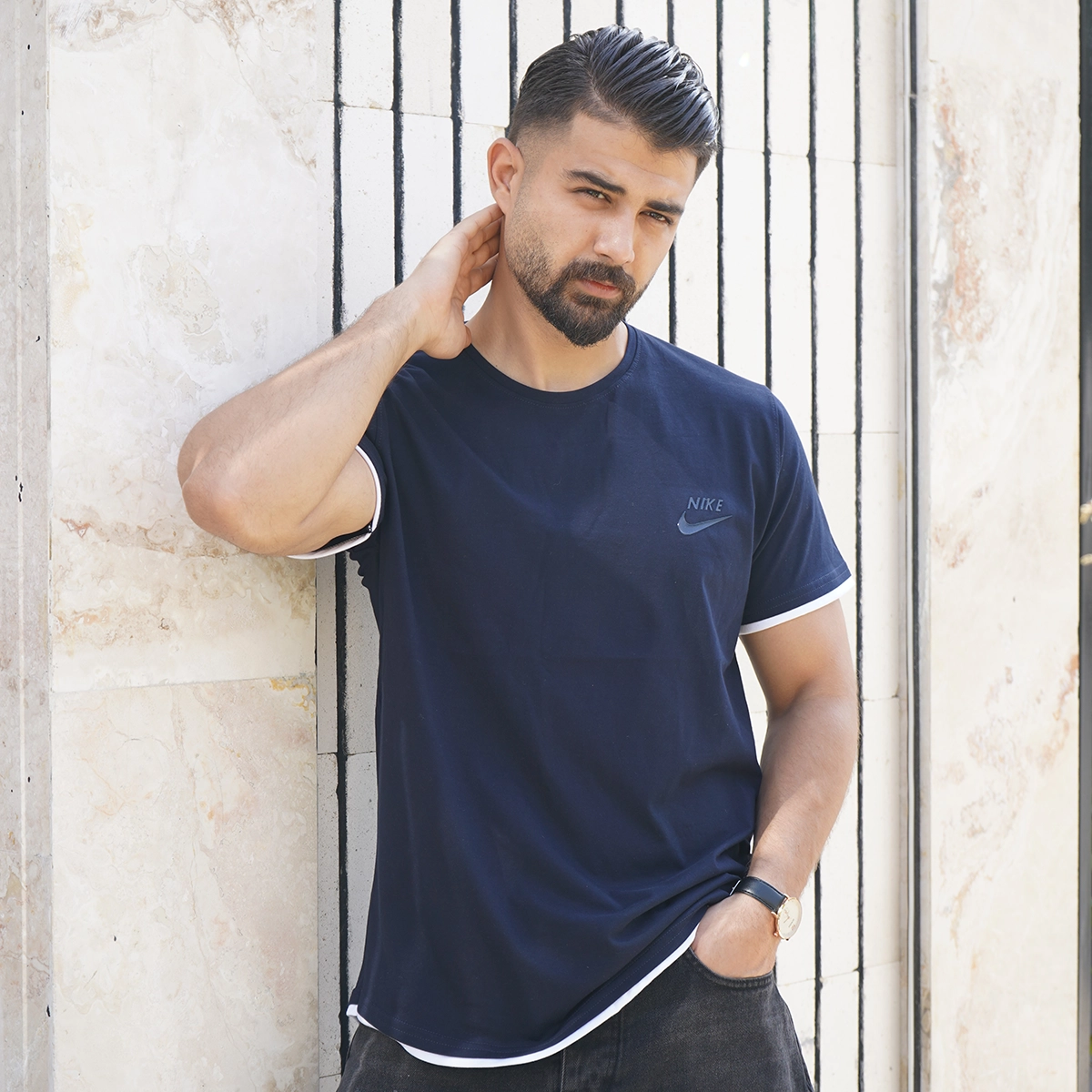 تیشرت یقه گرد سرمه ای مردانه مدل kamyar