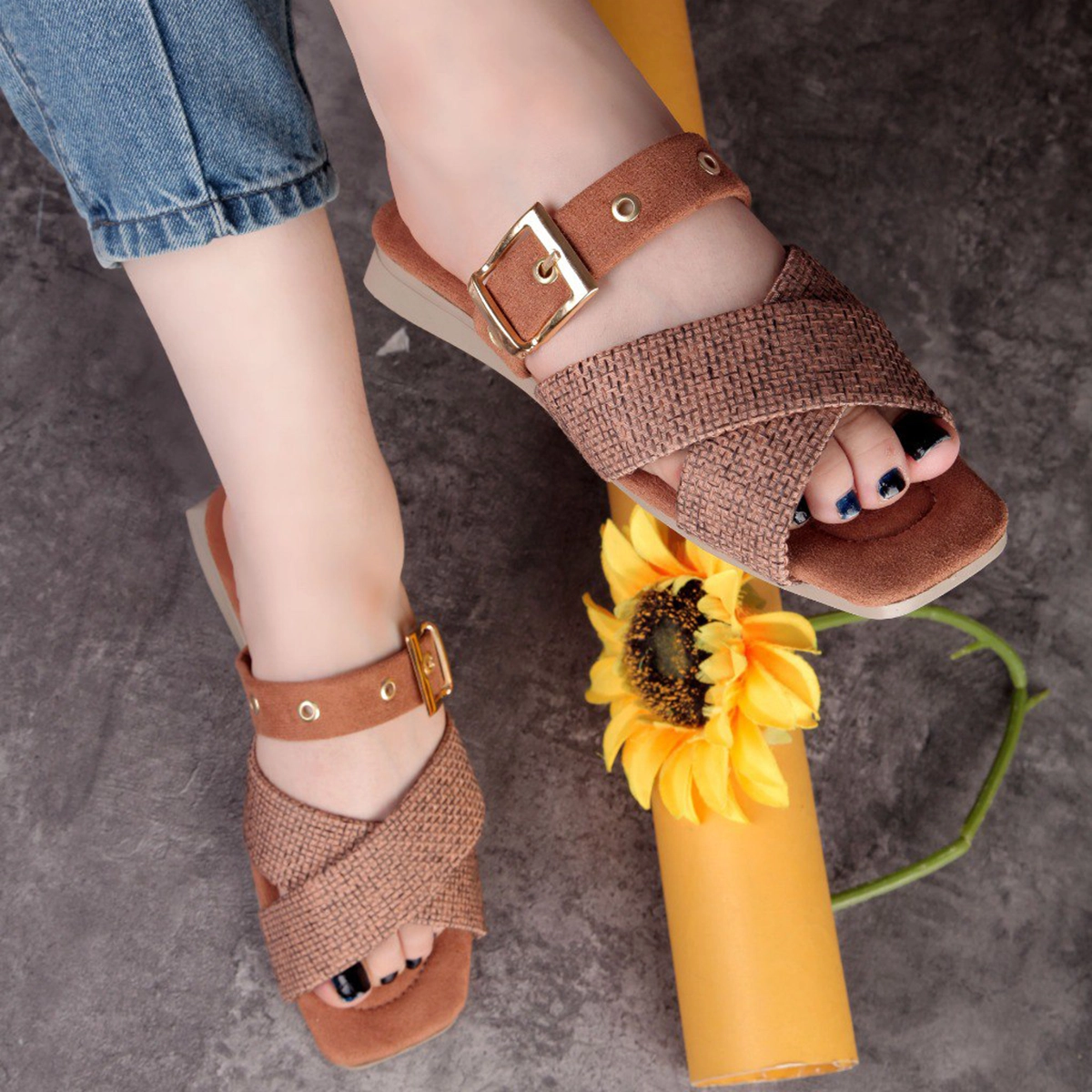 صندل کنفی ضربدری قهوه ای زنانه مدل Dorna