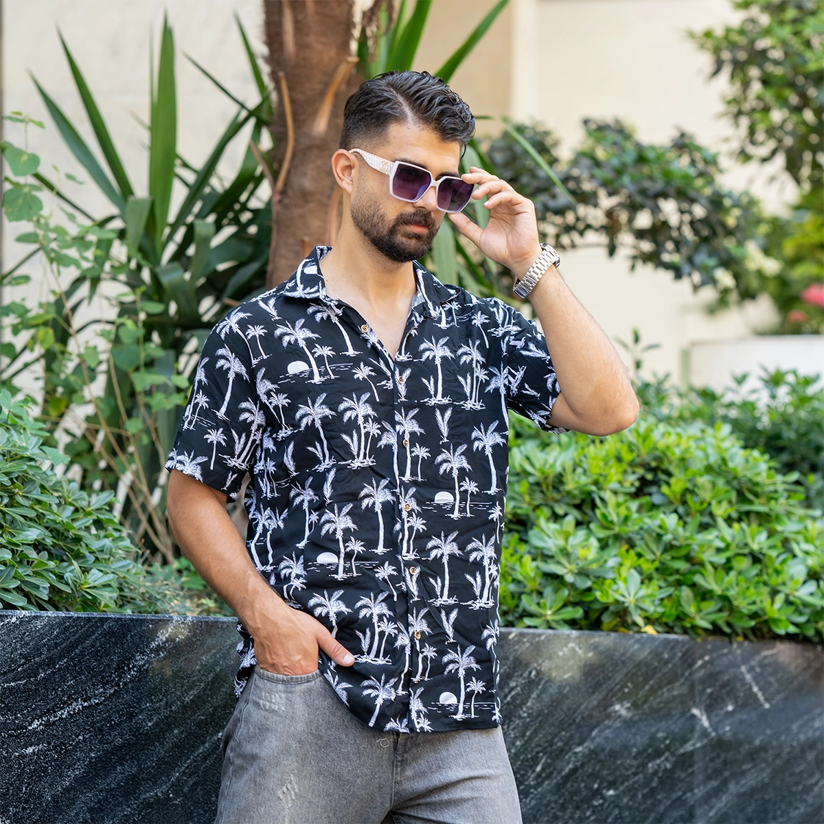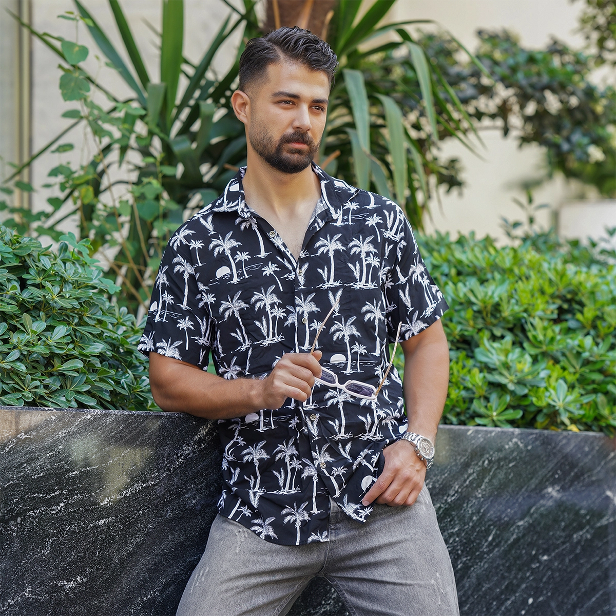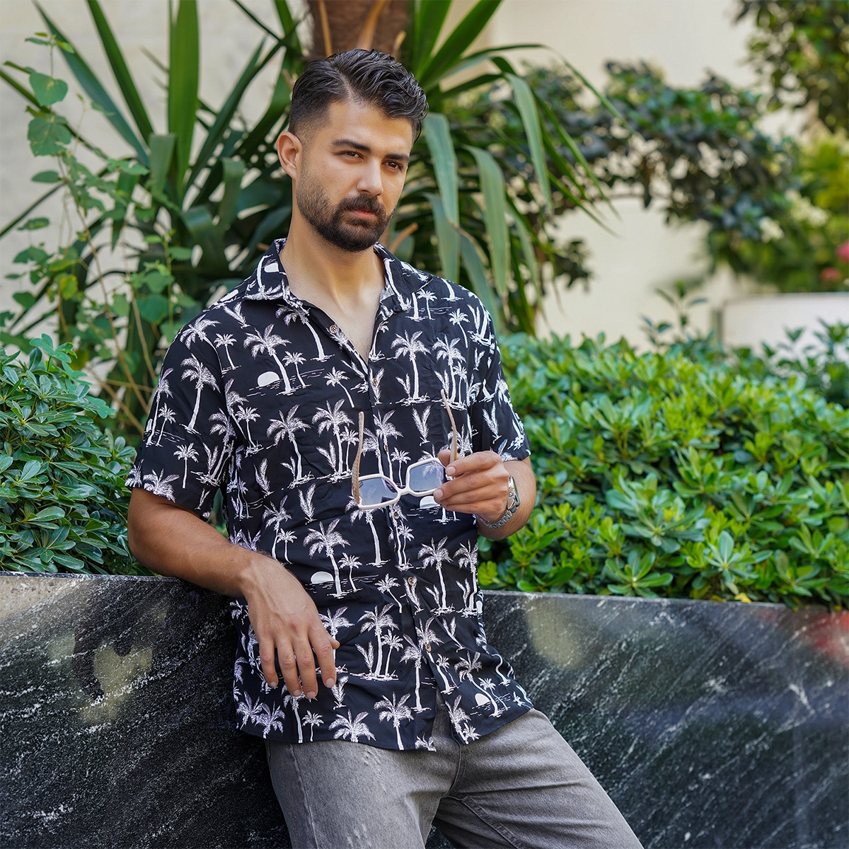 پیراهن هاوایی طرح نخل مشکی مردانه مدل Lavin